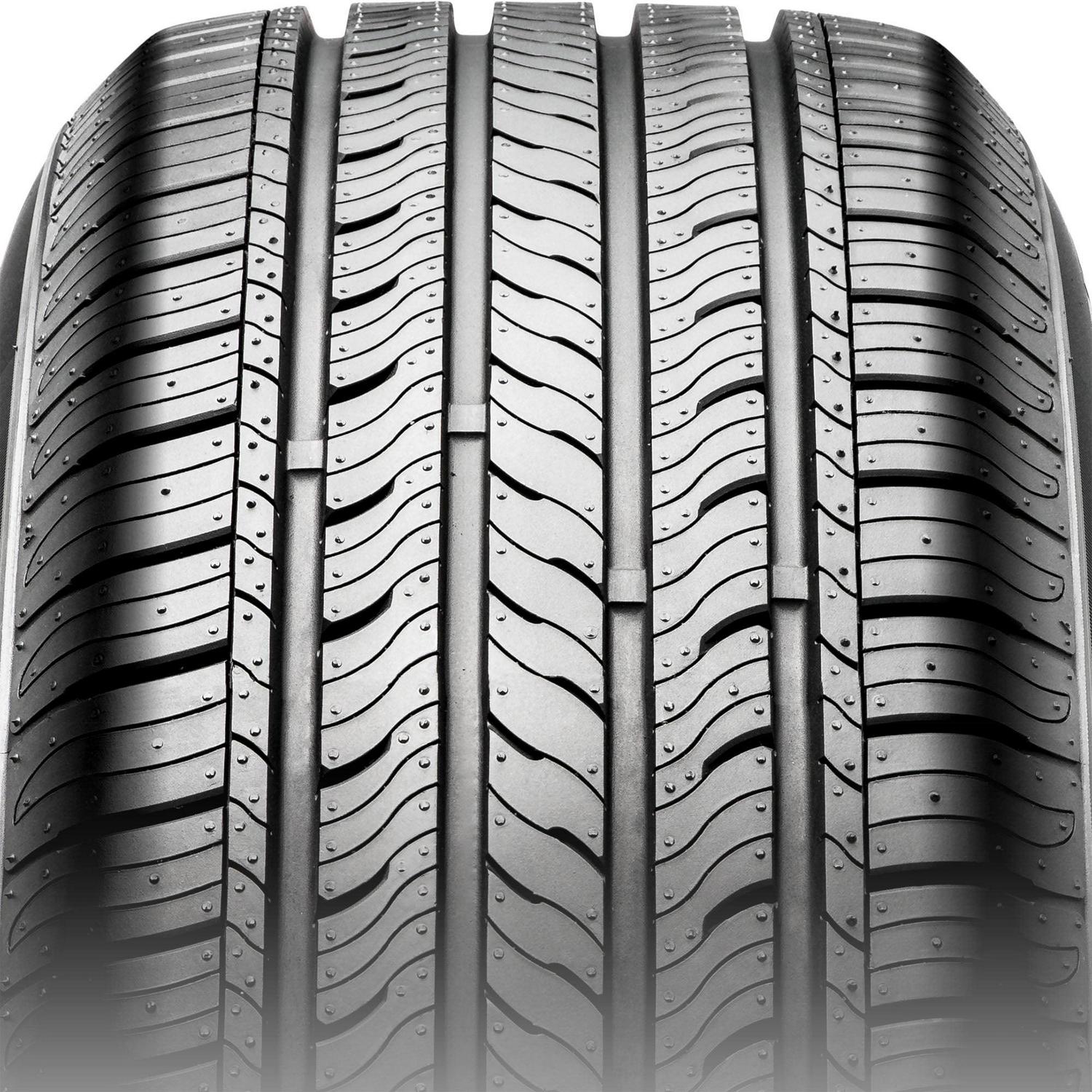 – Dense siping throughout the tread bites into the road to enhance traction and handling in dry, wet, and light winter weather conditions