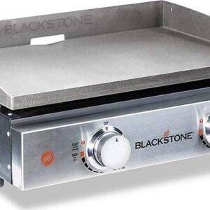 Take the Blackstone 22” Gas Tabletop 2 Burner Griddle anywhere outdoors for big and versatile meals. Equipped with two independently controlled heat zones. Youll have full control of the 352 sq. inch plate for simultaneous low and high heat cooking. The two “H” style burners provide even heat distribution for optimal cooking across the whole griddle. Stable on any surface from grassy hills to muddy terrain, so you can eat up delicious burgers, hot dogs, steaks, eggs, and more! No stress – easy to clean and feeds the whole family.