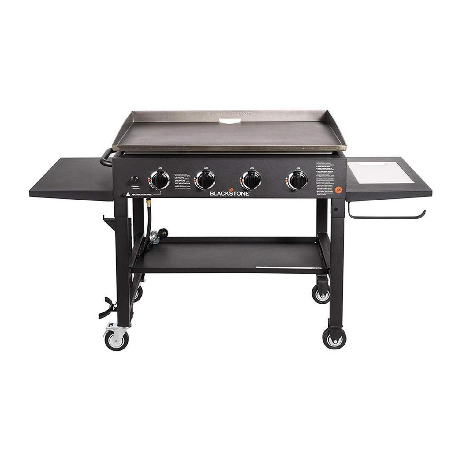Reinvent outdoor cooking with the 36-Inch 4 Burner Portable Griddle Cooking Station from Blackstone. The cold-rolled 720 square inch steel griddle surface is perfect for non-traditional grill foods like quesadillas, veggies, and fried rice. Four independently controlled stainless steel burners offer a total of 60,000 BTU of heat, allowing different meals to be cooked at once and reducing the number of dishes to wash. Easily manage excess grease with the front grease management system that makes cleanup easy and fast, leaving you more time with your guests. A freestanding portable design with foldable legs and lockable wheels allows for easy transport and storage of this griddle-style grill when not in use. Keep everything you need to grill at an arm’s reach with the included storage rack. The stylish black steel design will be a great addition to any backyard. Cook a wide variety of non-traditional grill foods in minutes with the 36-Inch 4 Burner Portable Griddle Cooking Station from Blackstone.