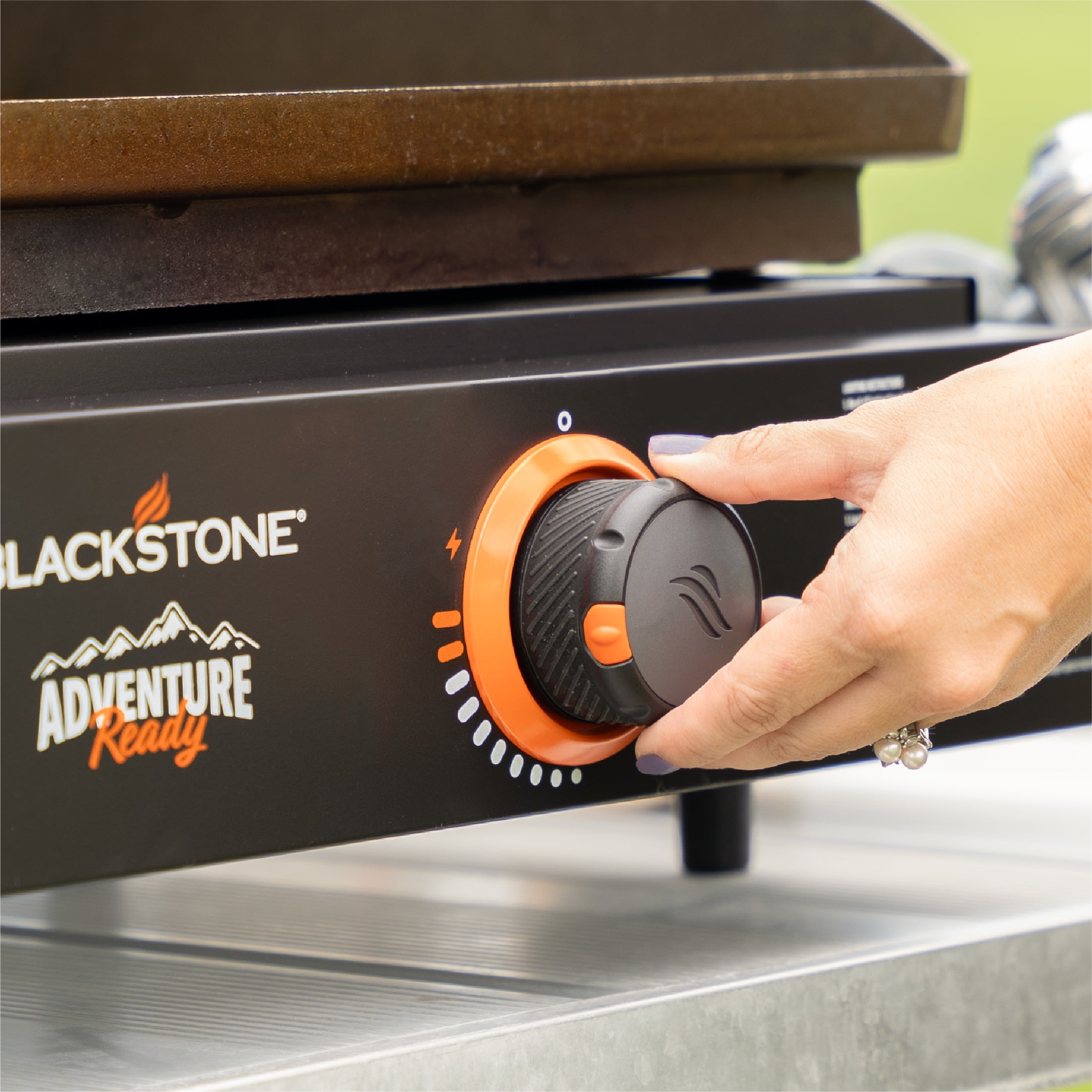 Blackstone Adventure Ready 17” Propane Griddle with Hard Cover Heavy-duty rolled steel griddle plate with 267 sq. in. cooking area, 12,500 BTUs cooking power, and 1 adjustable heat zone Compact design for easy storage and transportation Blackstone-patented rear grease management system for easy grease control Included hard cover to protect griddle top Fueled by propane with integrated 1 lb. propane tank connector (propane tank not included) Push and turn Piezo ignition for easy ignition and adjustable heat control Non-slip feet to keep griddle in place while in use 1-Year Limited Warranty Customer Service: +1 (435) 252-3030 Ext. 1 Model #2339