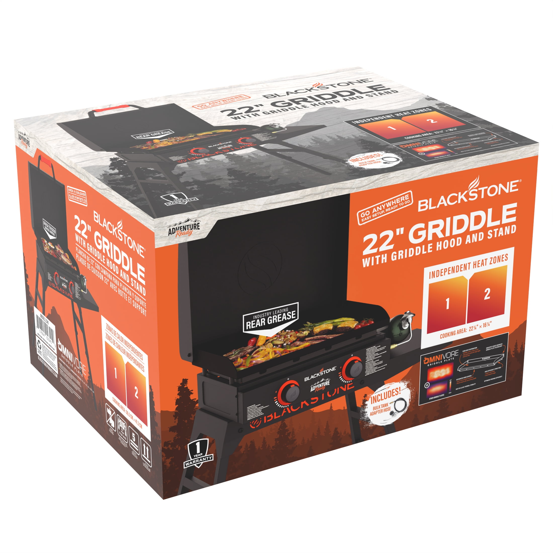 - Blackstone Adventure Ready 22″ Omnivore Propane Griddle with Stand and Adapter Hose