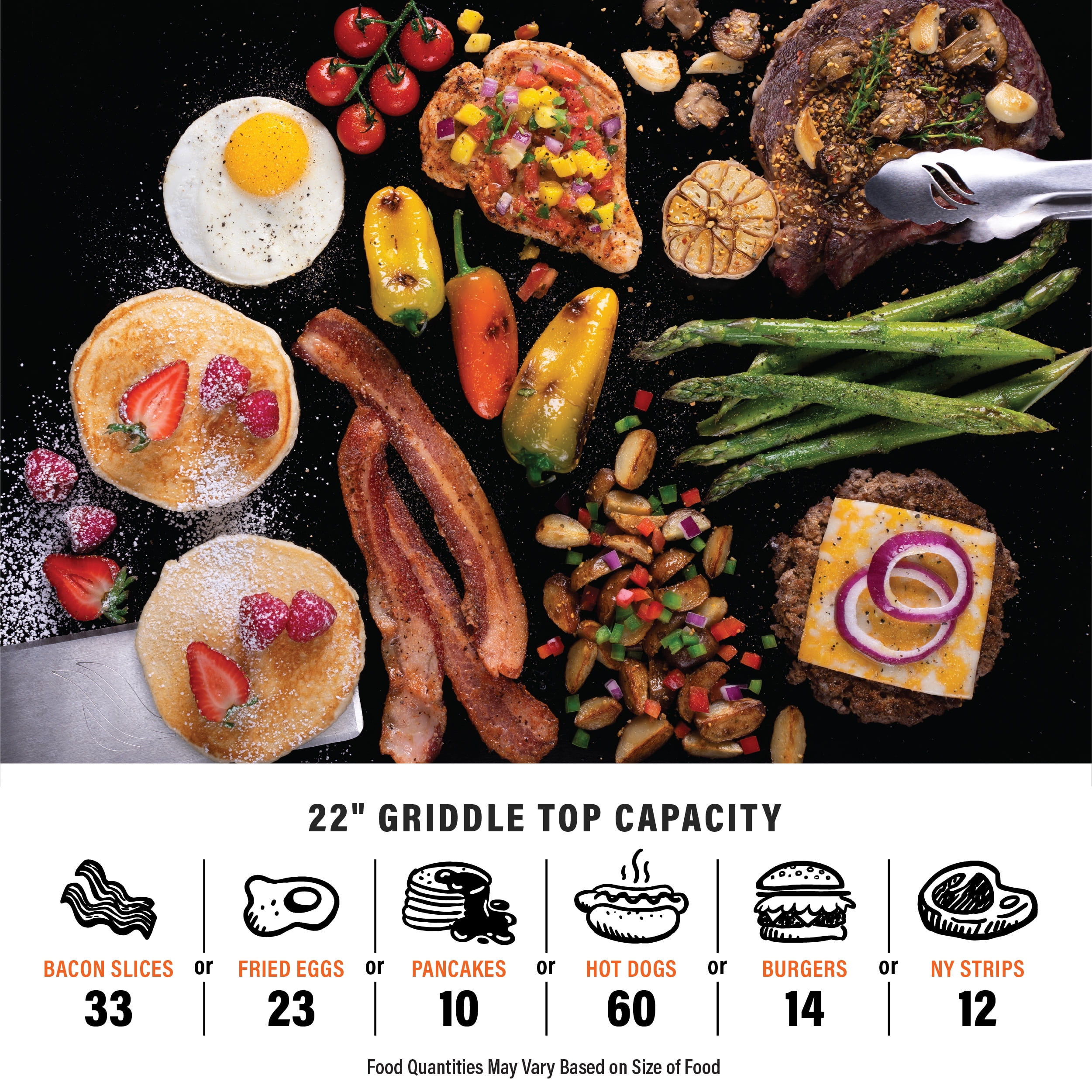 - Cooking Surface Width: 22 in