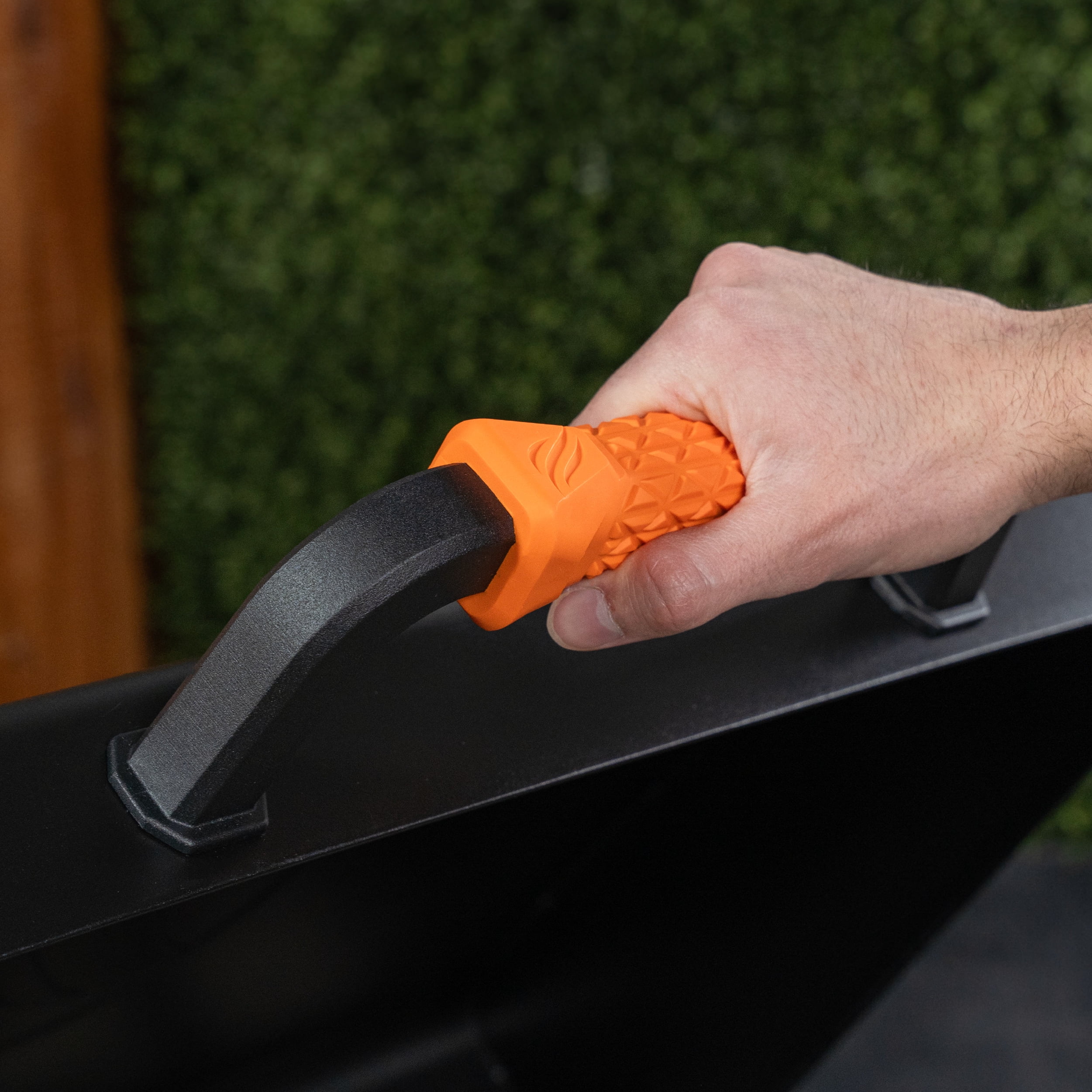 - Includes hood with orange non-slip grip handle