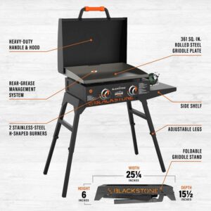 – Blackstone 22″ Table Top Griddle with Hood, Legs and Bulk Adapter Hose