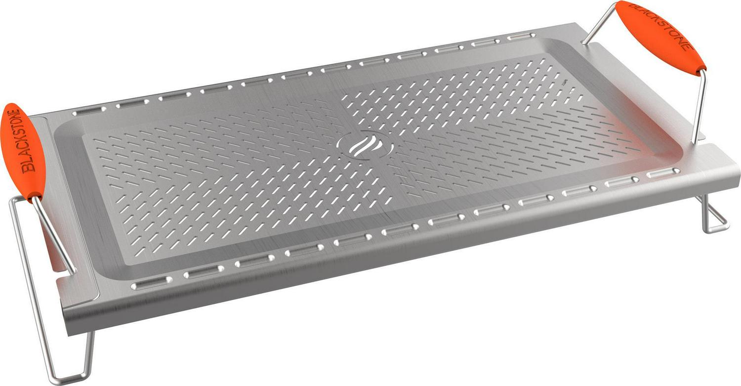 – Stainless-steel adjustable warming rack with heat-resistant handles