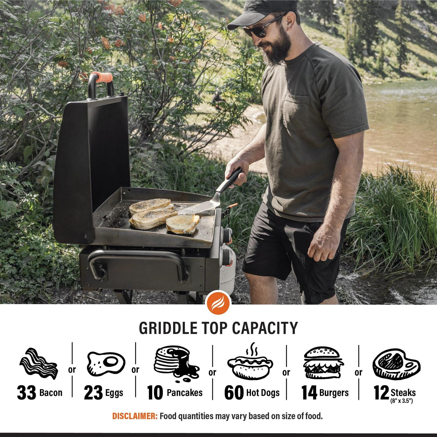 – Roll-And-Go wheel design makes this the perfect flat top grill to take to the park, campsite, tailgate, or any outdoor adventure
