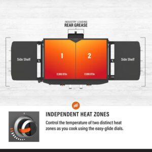 - Two stainless-steel, H-shaped burners with a combined 34,000 BTU’s