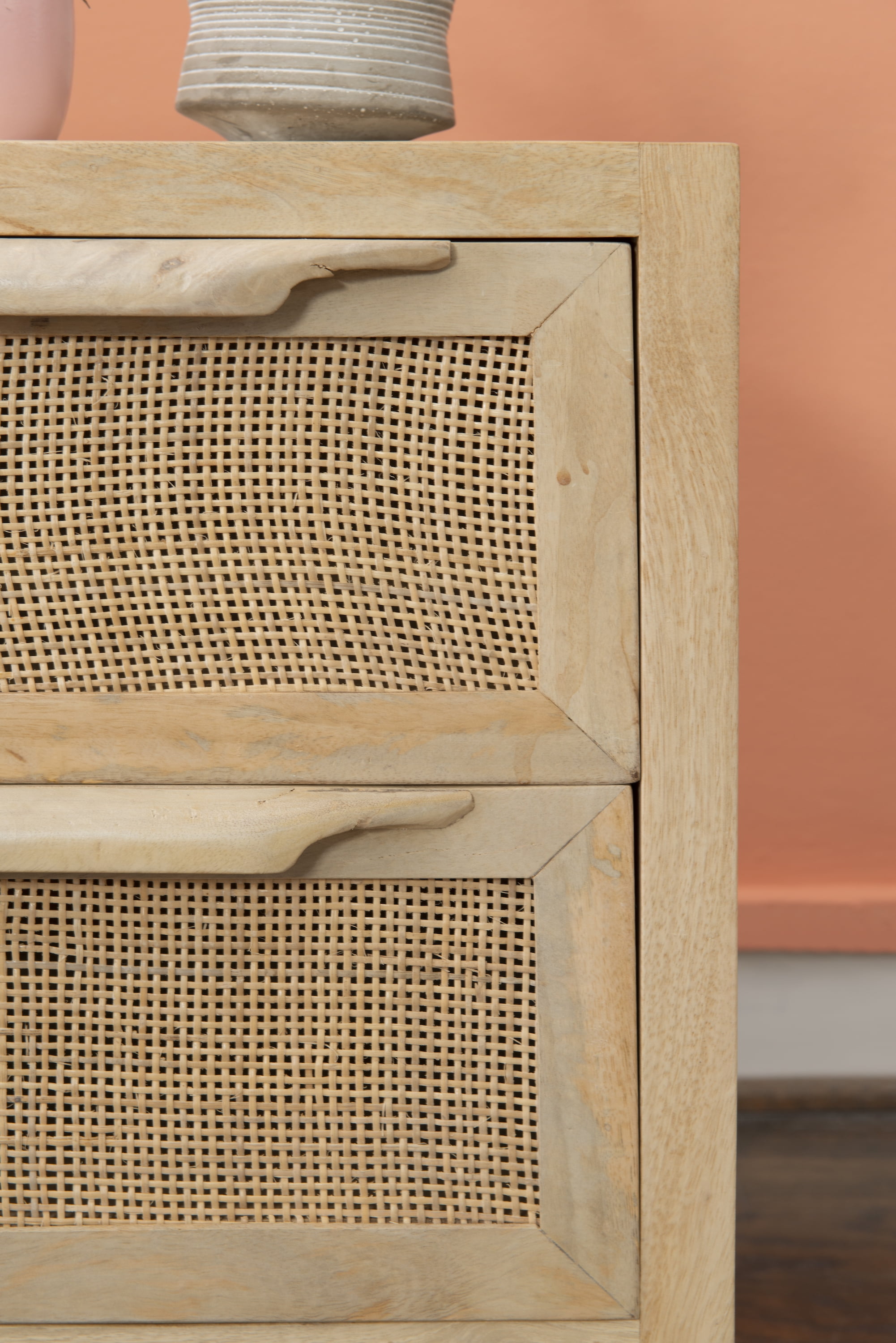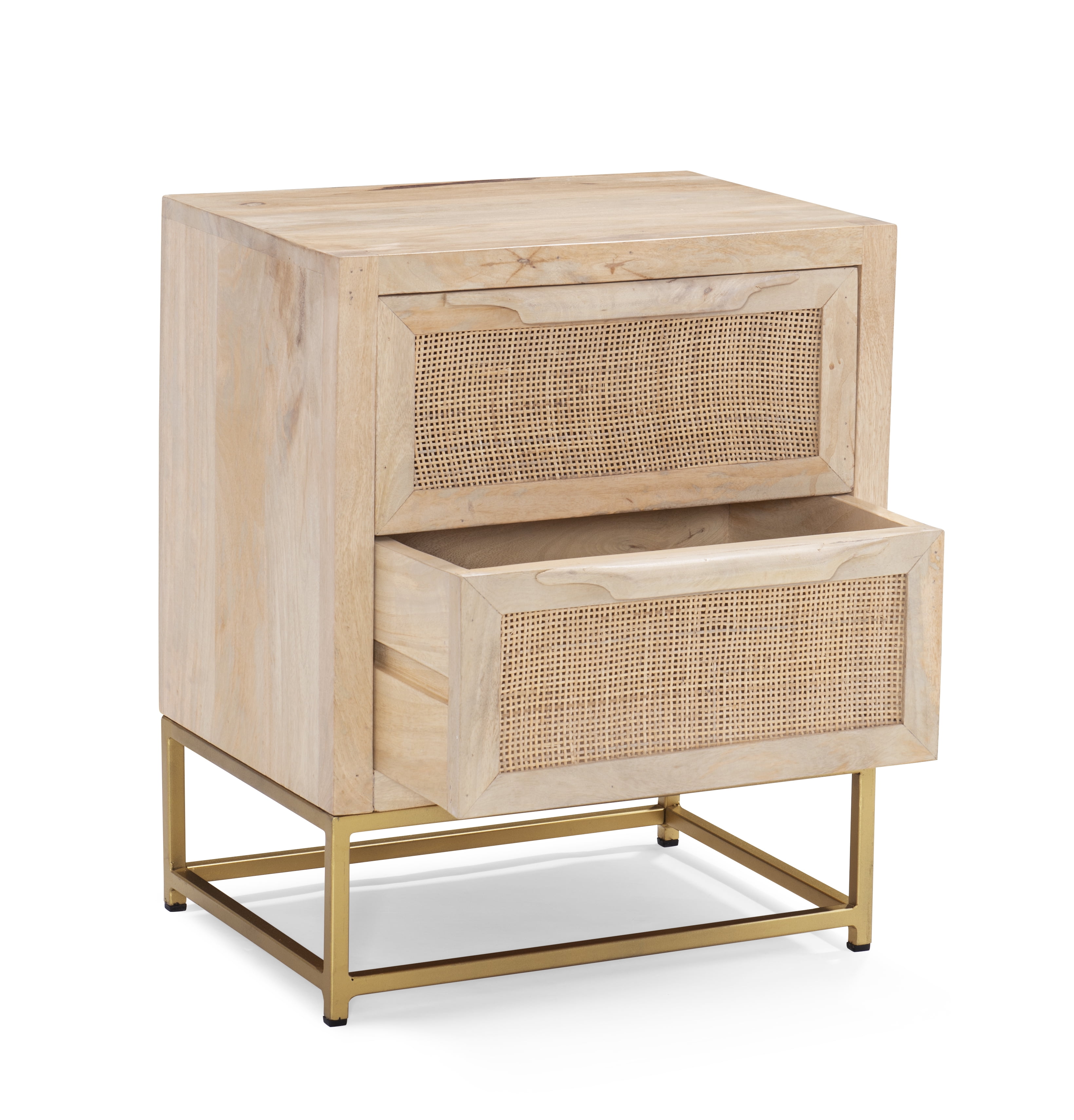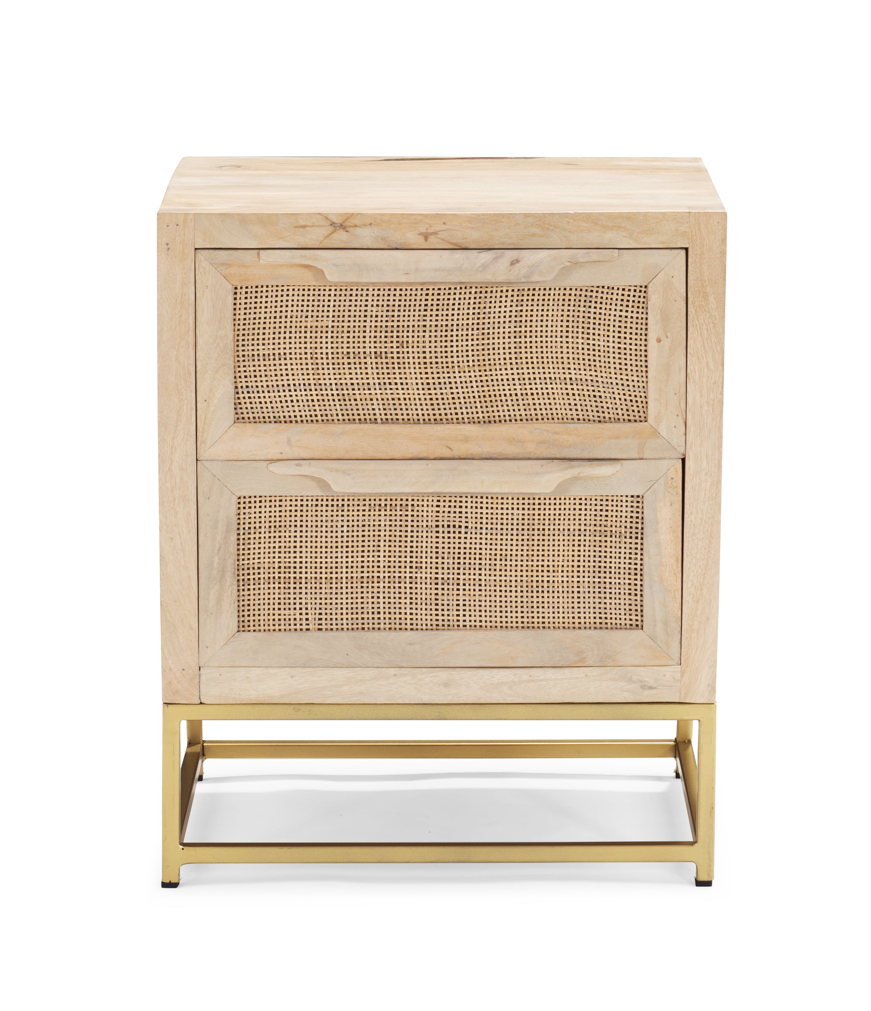 Blair 2-Drawer Rattan End Table, Natural and Gold