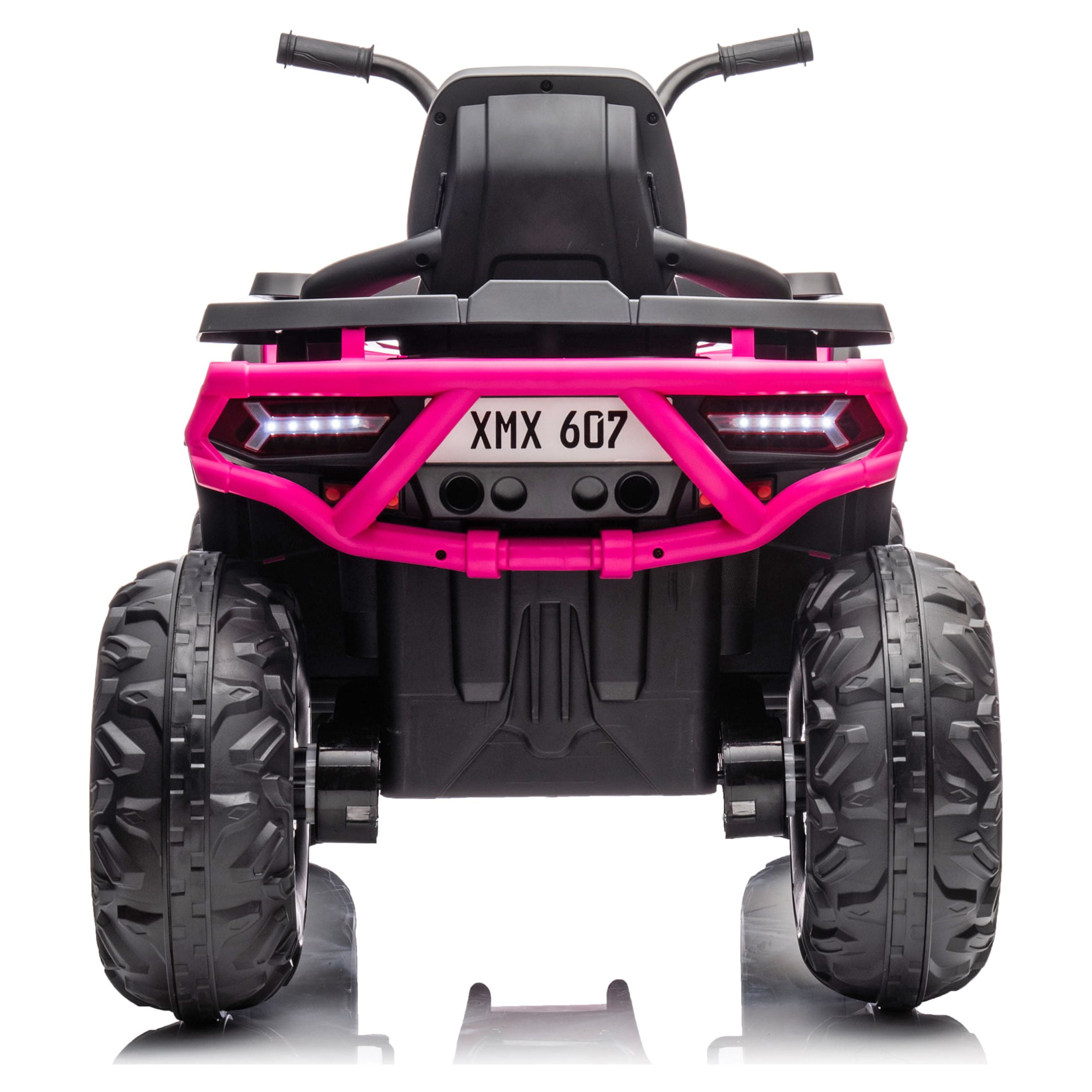 3 to 8 Years Speed of 1.86 to 4.35 mph Lights and Sound Hi and Low Speed Volume Control 1 Year Warranty for Car, 6 Month Warranty for Battery. For Customer Support please go to wheels support.com 110 Pound Recommended Weight Capacity Distance from seat to pedal 11.02″ Great Gift item for any Girl Ages 3 to 8 Years XMX607P 12V Ride On ATV (Pink)