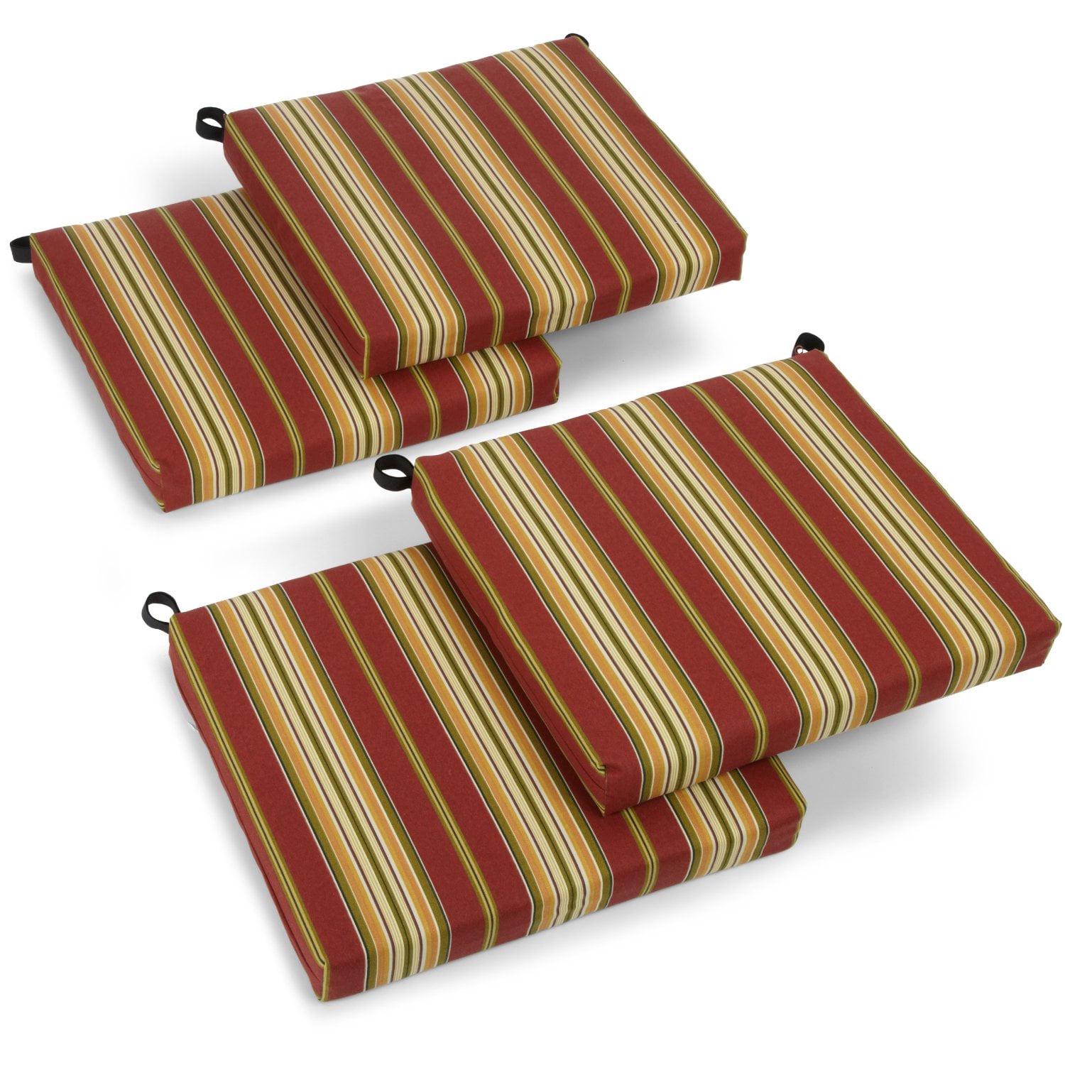 Add a splash of vibrant color and radiant style to your outdoor furnishings with these outdoor chair cushions. These cushions feature a classic chair cushion style, striking patterns of premium spun polyester outdoor fabric.