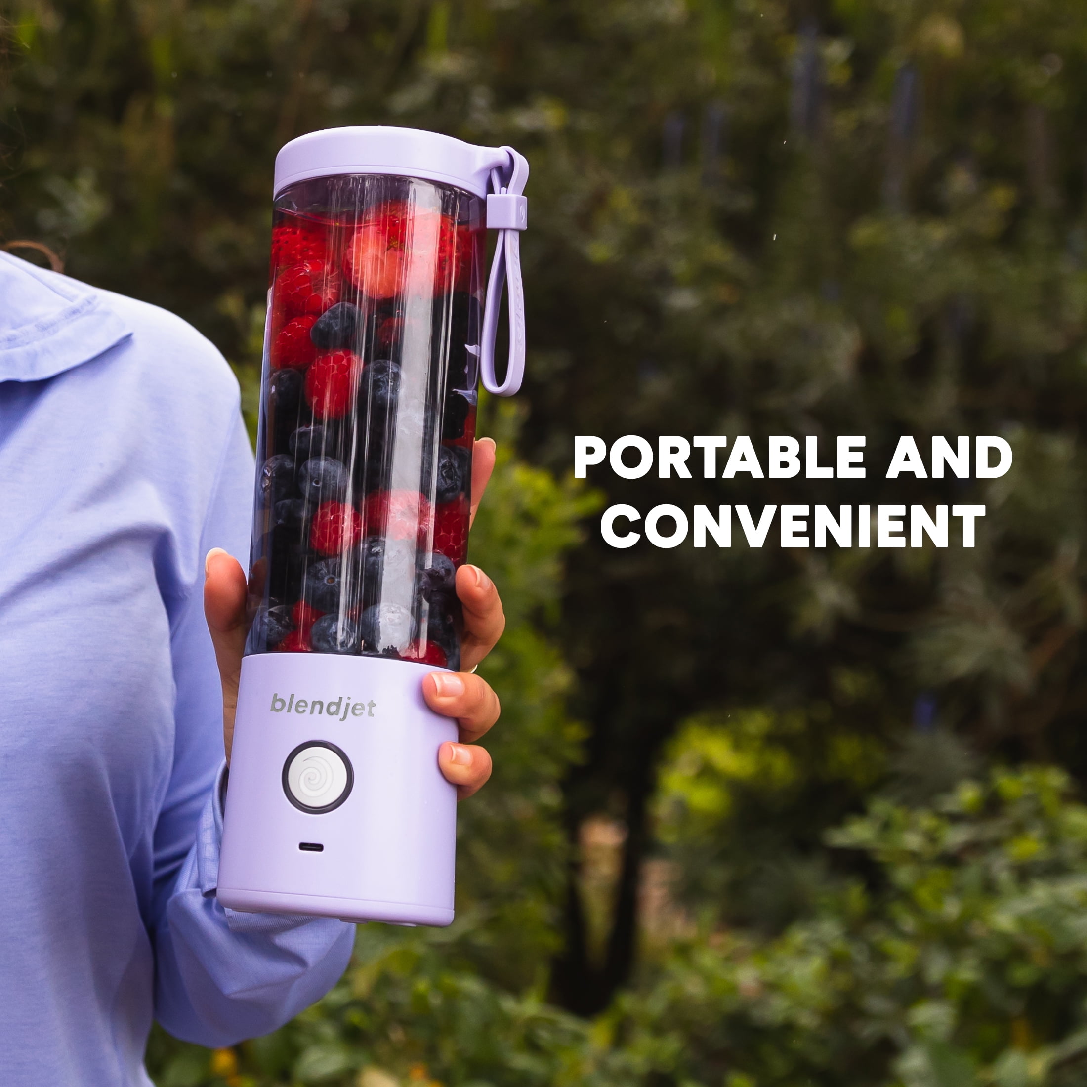 The Original Portable Blender. BlendJet2 is a new game-changing 20 oz portable blender with the power to reinvent your routine and make healthy choices happen anywhere — no cord or outlet needed. This triumph of technology is USB-C rechargeable, making it easy and convenient to blend smoothies, protein shakes, margaritas, frozen lattes and more, at home or on the go. BlendJet 2 is perfectly sized to fit in a cup holder or travel in your bag, and cleanup is a breeze: just blend water with a drop of soap, rinse, and you’re ready for your next blended creation. Patented TurboJet technology powers through ice, frozen fruit, leafy greens and other tough ingredients. BlendJet is more than a blender, it’s a way of life. We invented the original portable blender so you can make your favorite blended beverages without the limitations, hassle or cleanup of a big blender. The ability to be anywhere and blend everywhere has defined a new category and shaken up the industry. Whether your idea of wellness is a fresh fruit smoothie at the office, a protein shake at the gym, or chilling with a frozen margarita on a beach, we’re excited to serve up a convenient way to help you be the healthiest and happiest version of yourself.