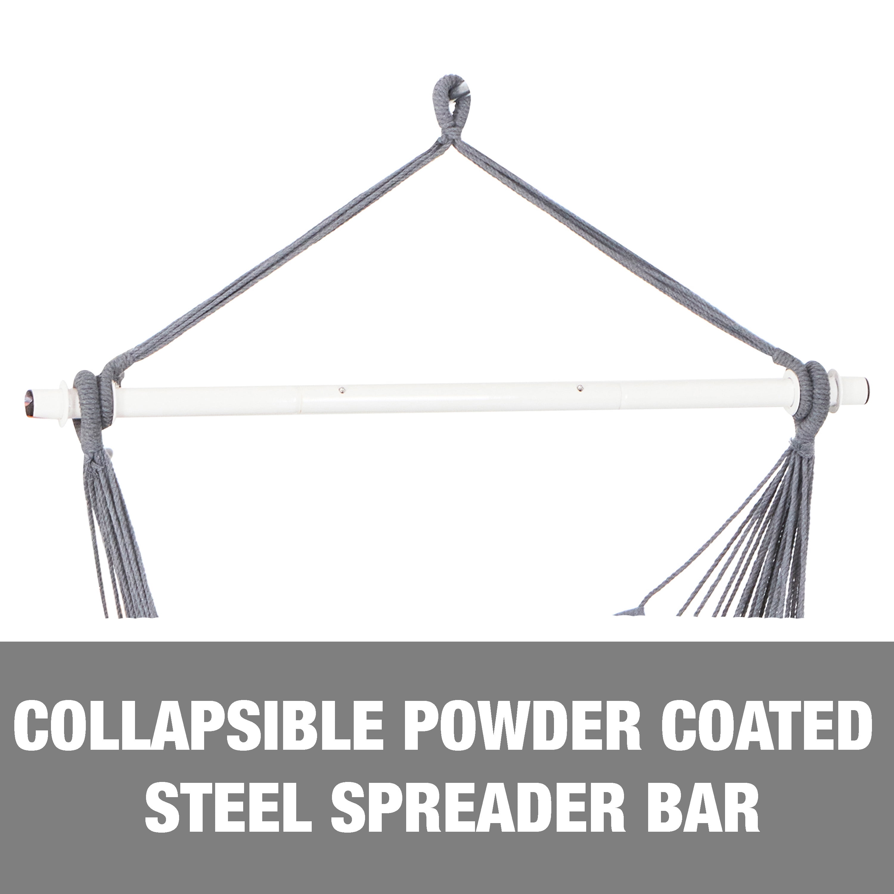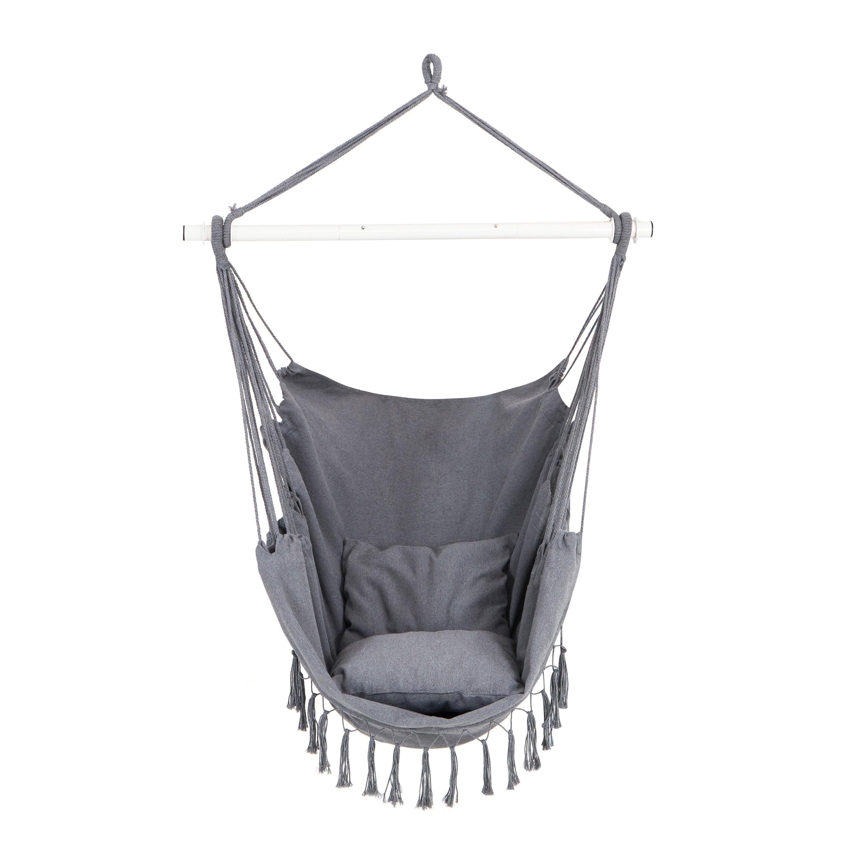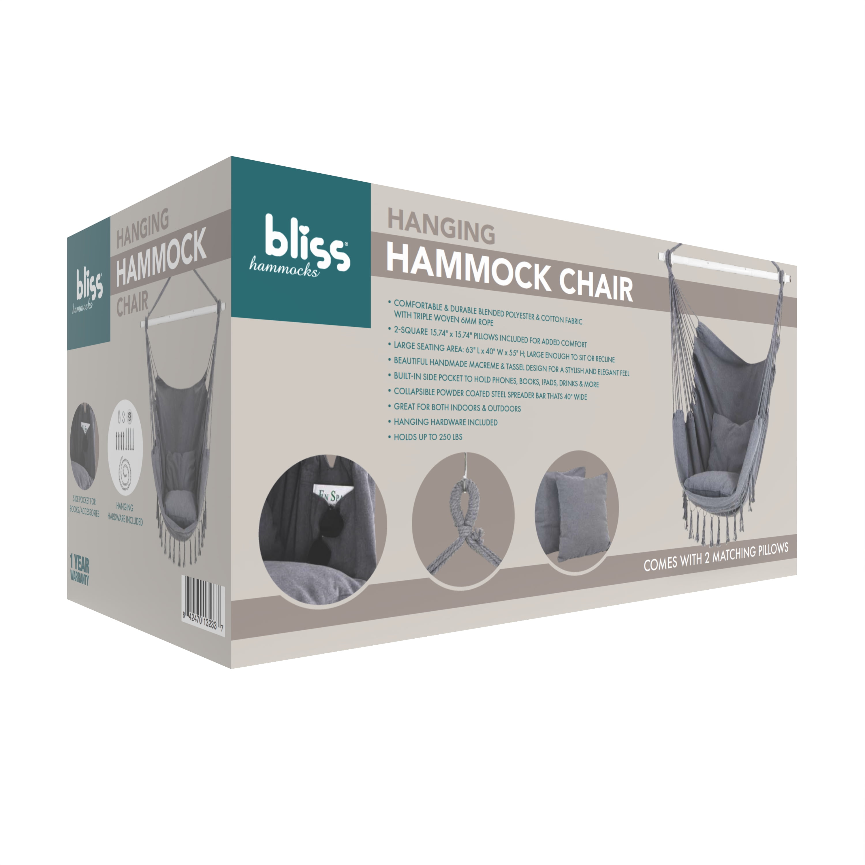 Bliss Hammocks Fringed Hammock Chair w/ 2 Matching Square Pillows & Built-In Side Pocket -Gray