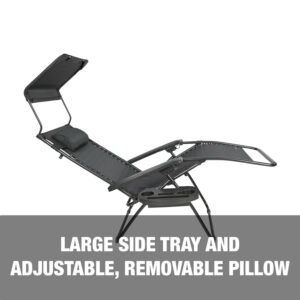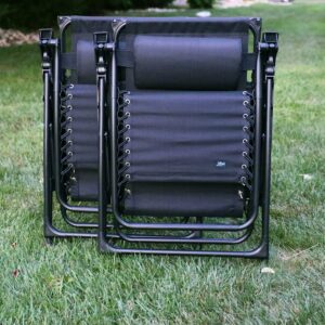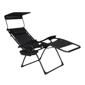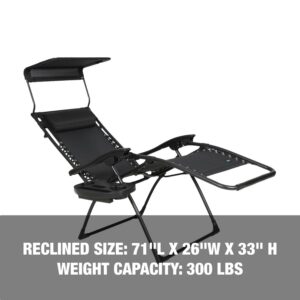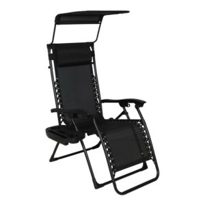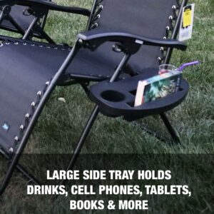 Bliss Hammocks Set of 2 Gravity Free Chairs W/ Canopy, Drink Tray, and Pillow, 26-in. Wide, Weather and Rust Resistant, 300 lb. Capacity (Black)