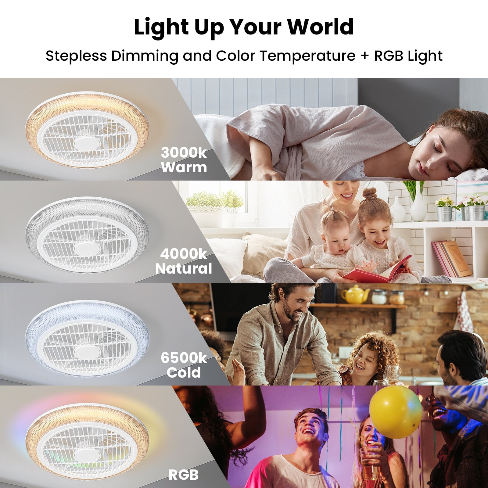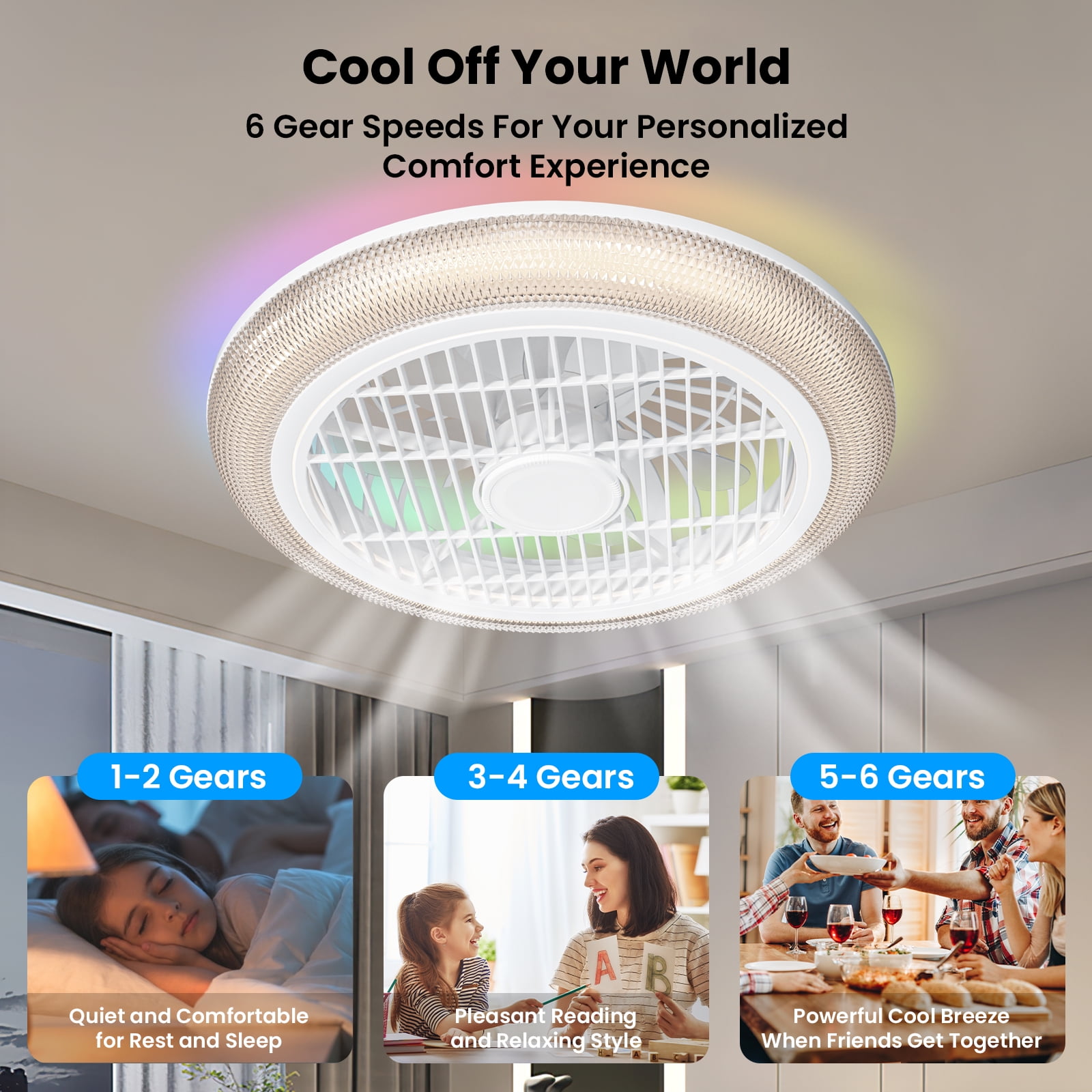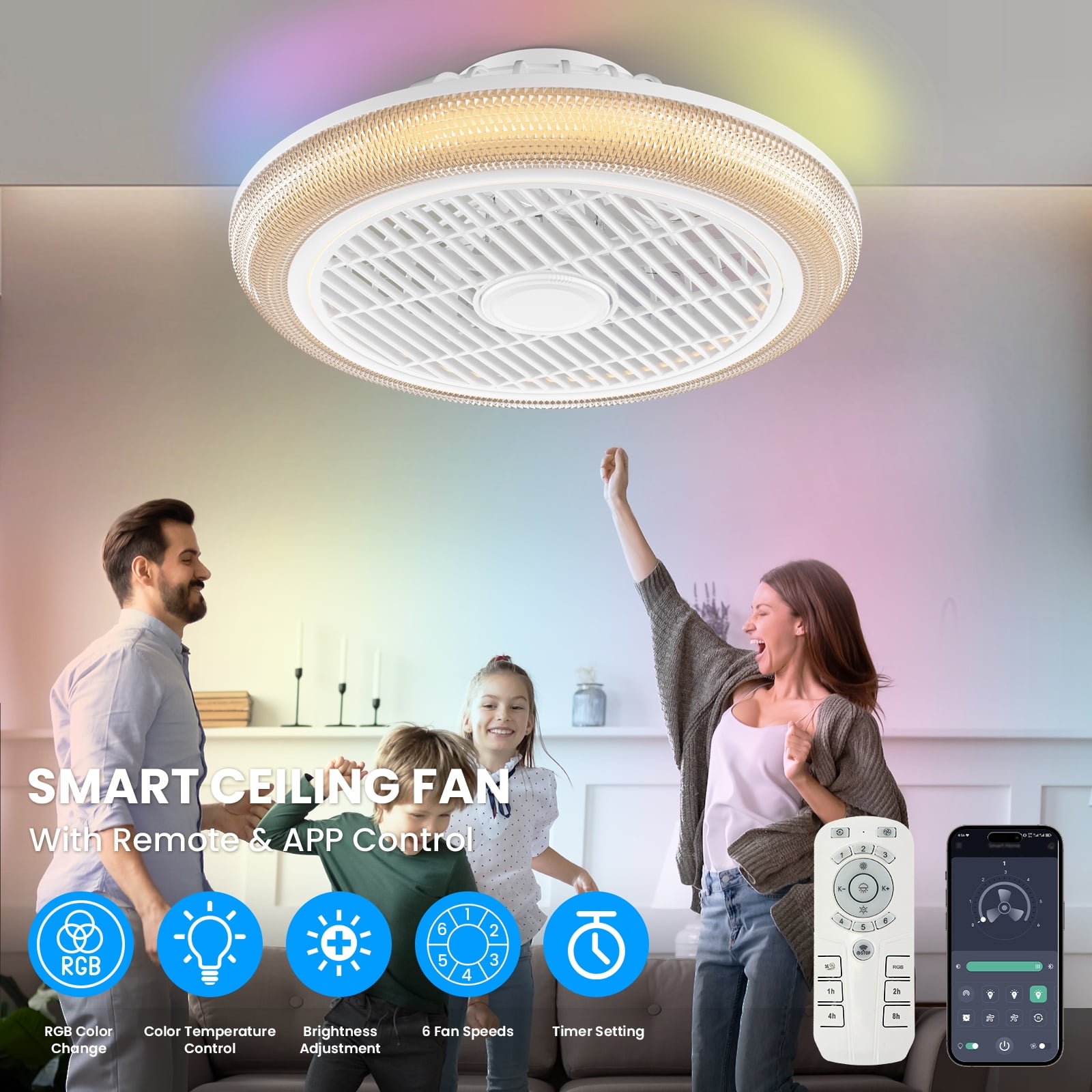 BLITZWILL RGB Bladeless Ceiling Fan With Light: This is a up-to-date, multifunctional fan with RGB back ambient light. has colorful RGB effects, you can enjoy party, and stage lighting at home, bringing a new visual experience, you will love it!