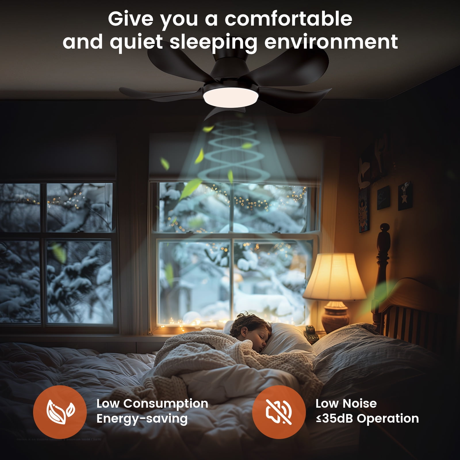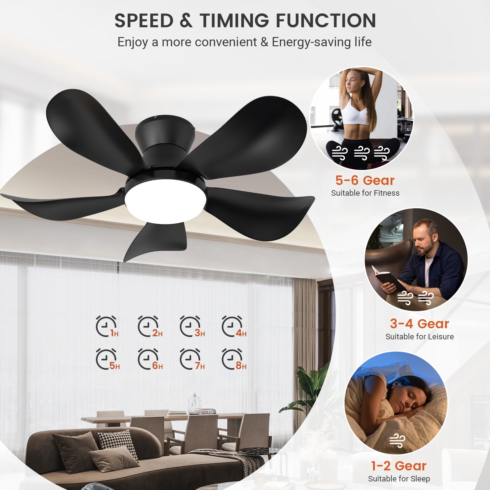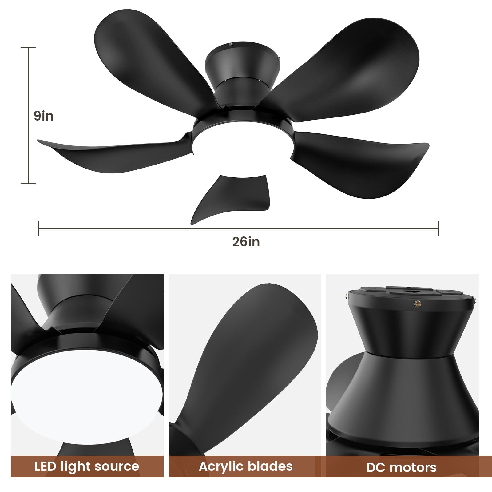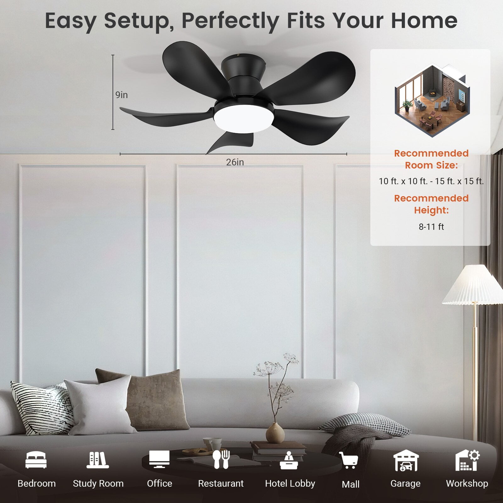 BLITZWILL Ceiling Fans with Lights and Remote & App Control,26 inch Low Profile Modern Ceiling Fans with 5 Reversible Blades,3 Colors Dimmable 6 Speeds Quiet, for Bedroom Kitchen Garage,Black
