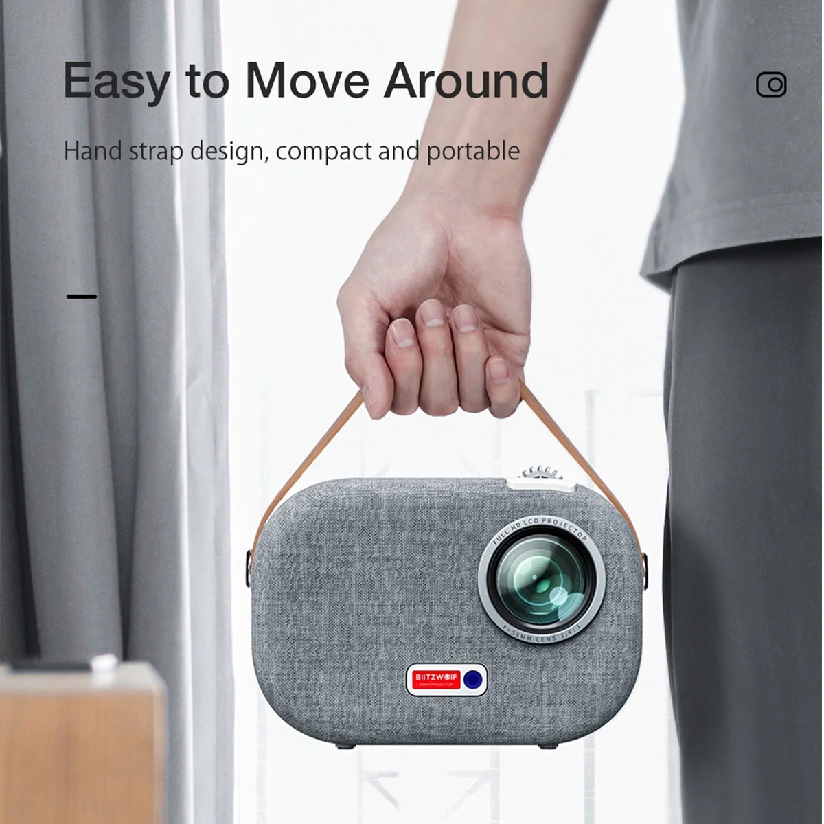 The BlitzWolf Smart Portable Projector is the perfect addition to your home theater setup! With its built-in Android 9.0 Google Assistant, you can choose whatever you want to watch and download apps like Netflix, Youtube and Hulu directly onto the projector. The projector also supports iOS and Android wireless screen mirror. The projector has automatic horizontal keystone correction that adjusts automatically in one second, making it super convenient. It has a real Full HD 1920×1080 resolution and a massive 150 inches screen size. The projector also has built-in 5Wx2 subwoofer speakers that give you the surround sound effect. The BlitzWolf Smart Portable Projector loads fast with 2.4G/5G wifi. It is a multi-media home theater projector that has built-in HDMI, VGA, USB, TF card, AV, 3.5mm headphone plug. Multiple interfaces are compatible with various types of video sources, such as laptops, mobile hard drives, etc. The projector has a unique appearance design with light grey fabric surface that delivers a comfy feeling. It can be an adorable decoration at your room. The hand strap design makes it portable and suitable for outdoor use. With the BlitzWolf Smart Portable Projector, you can enjoy your favorite movies and TV shows in stunning Full HD quality with immersive surround sound!