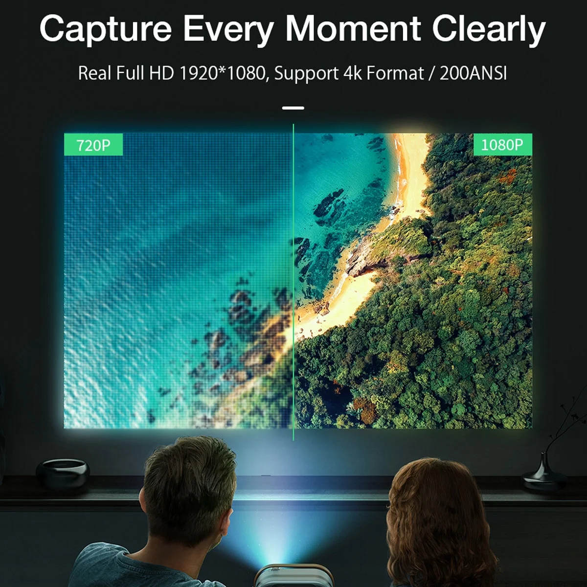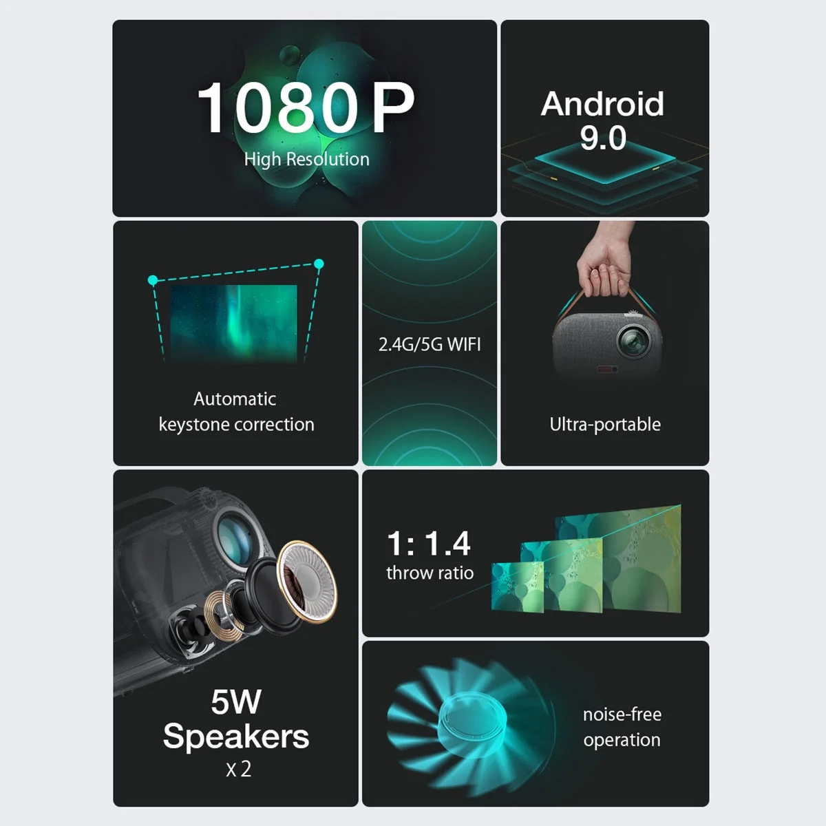 BlitzWolf Smart Portable Projector, Built-in Android 9.0 Google Assistant, 1080P, Mini Home Theater Outdoor Movie Projector with WiFi and Bluetooth