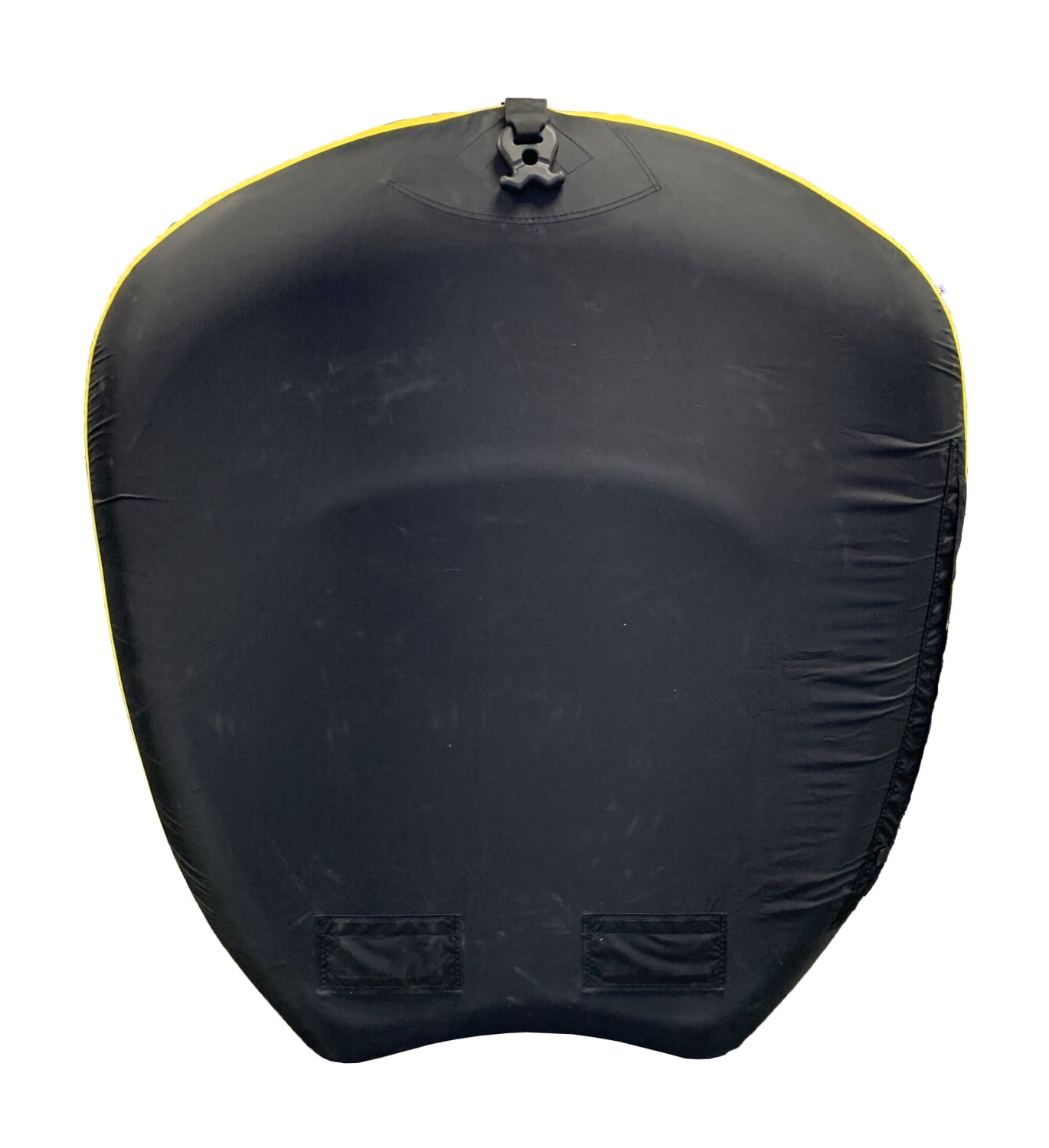 The Blue Angel 2 rider inflatable towable tube is the perfect addition to all of your water toys! 2 Rider Towable. 340 lbs. (154 kg) max rider weight. 48” x 56” x 12” (122cm x 142cm x 30cm) inflated. 52” x 60” (132cm x 152cm) deflated. Tapered profile for easy boarding. Durable 420D Nylon cover. Heavy duty 24 gauge PVC bladder. Centrifugal force deterrents keeps riders in place. Single rear boarding strap. 4 foam-filled handles with Neoprene knuckle guards. Quick connect tow point.
