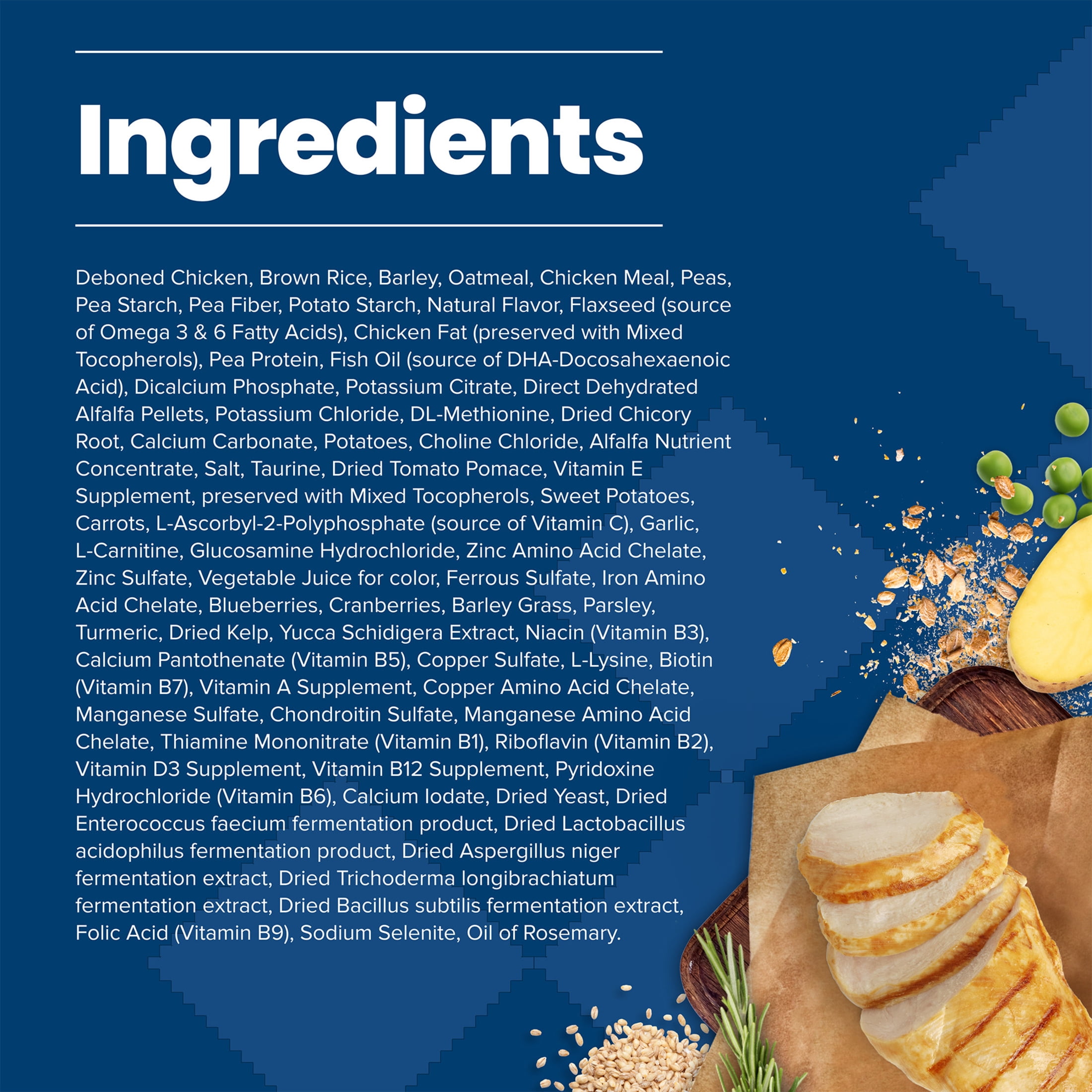 BLUE Life Protection Formula Senior Dry Dog Food is made with the finest natural ingredients –– including real chicken, wholesome whole grains, and healthy fruits and veggies –– to support your dog’s health and wellness. BLUE Life Protection Formula for senior dogs also features antioxidant-rich LifeSource Bits to support immune system health. What’s more, this senior dog food contains Glucosamine and Chondroitin to help support hip and joint health for overall mobility. Like all Blue Buffalo dog food recipes, BLUE Life Protection Formula contains no chicken (or poultry) by-product meals. This natural dry dog food is also free of corn, wheat, soy, artificial flavors, and preservatives.