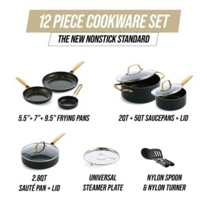 Blue Diamond Gold Edition Ceramic Nonstick 12 Piece Cookware Set, PFAS-Free, Gold