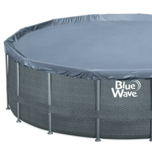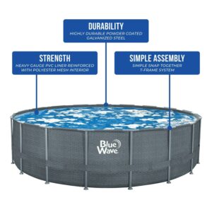 Blue Wave Gray Rattan 18-ft Round 52-in Deep Frame Above Ground Swimming Pool Package with Cover