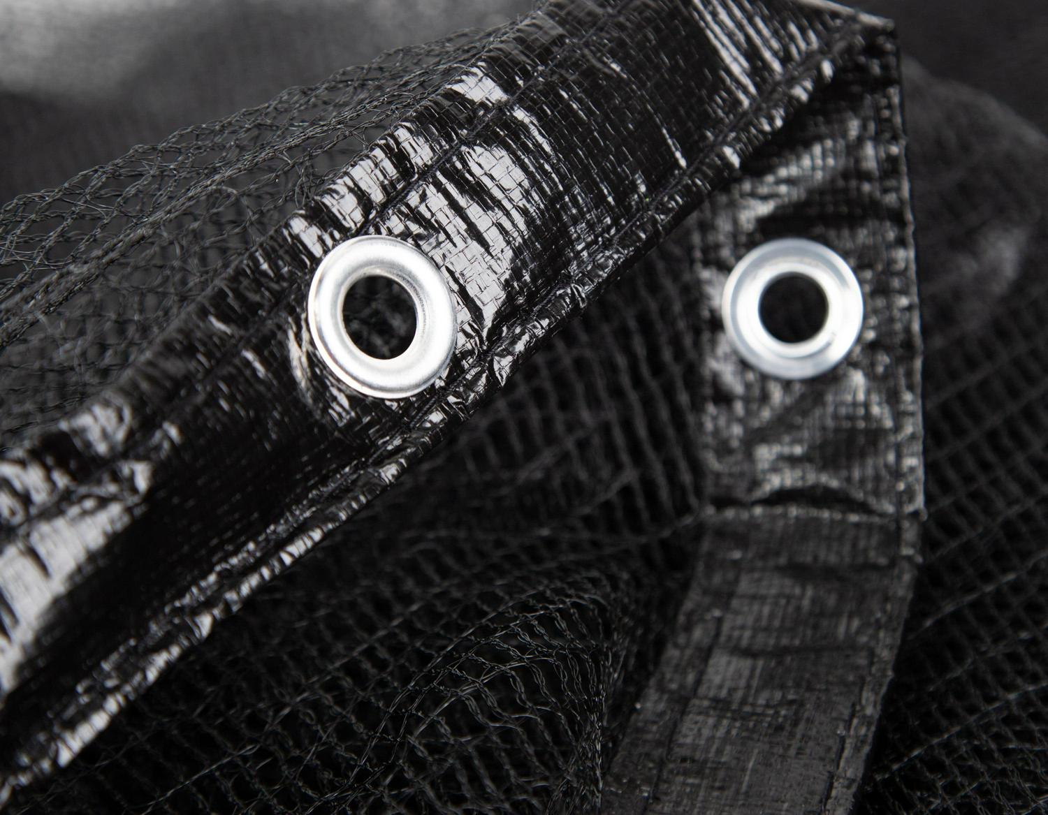 – Metal grommets are spaced every 2-ft for a secure fit