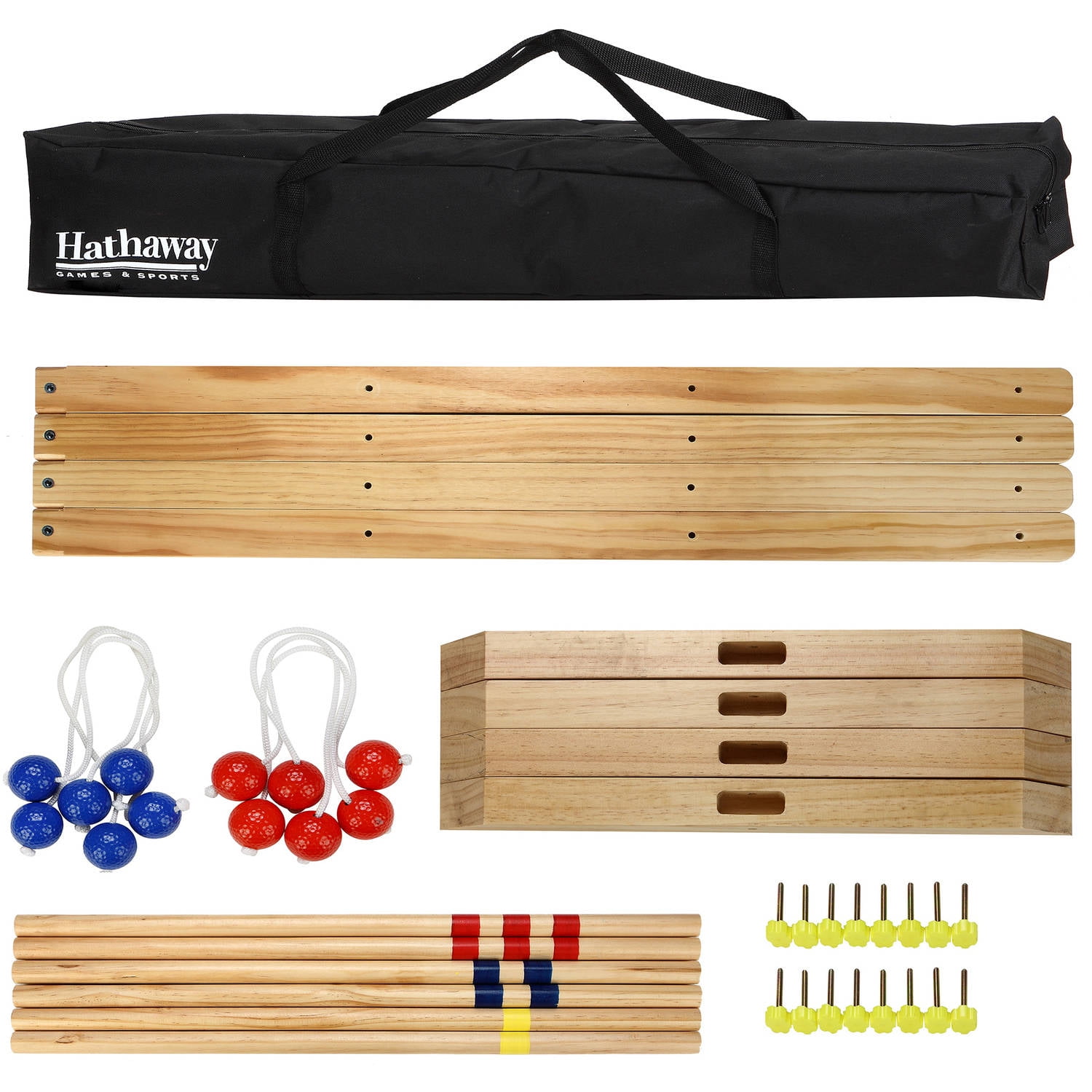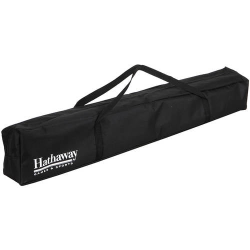 Add a new element of excitement to your next backyard party or camping trip with the portable Hathaway Solid Wood Ladder Toss Game Set. Sometimes referred to as Ladder Golf, this game is engaging for young and old alike – no experience required! Our set comes complete with everything you need to play the game in a handy rip-resistant nylon carry bag. The high-quality ladder targets are constructed of solid hardwood with weighted bases for more stability and longevity. The bolas, 2 balls attached by a nylon rope, are made from real golf balls for authentic gameplay. Pick up a set today and take it on the go with you for instant fun, anytime, anywhere. Hathaway is designed for fun, and built to last!