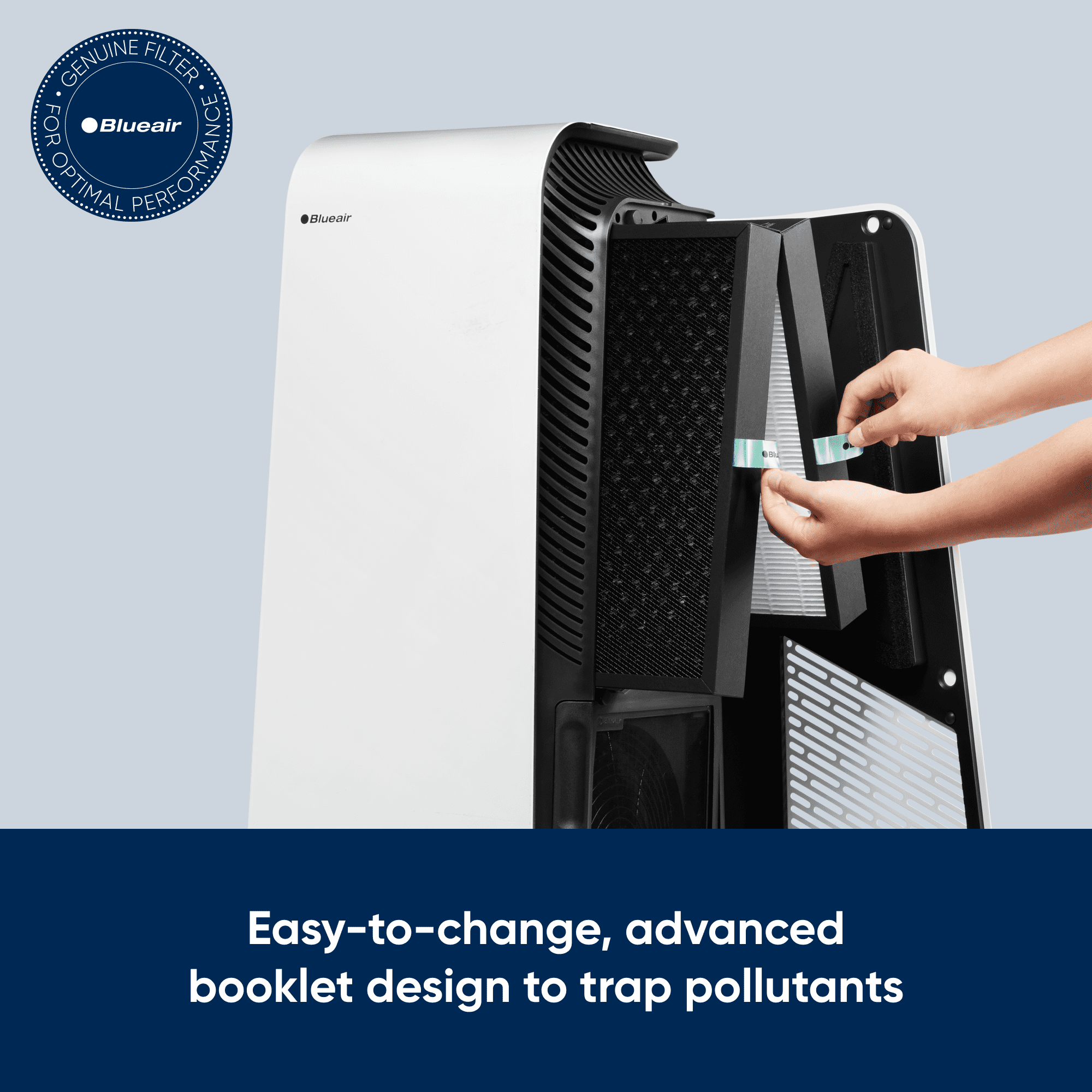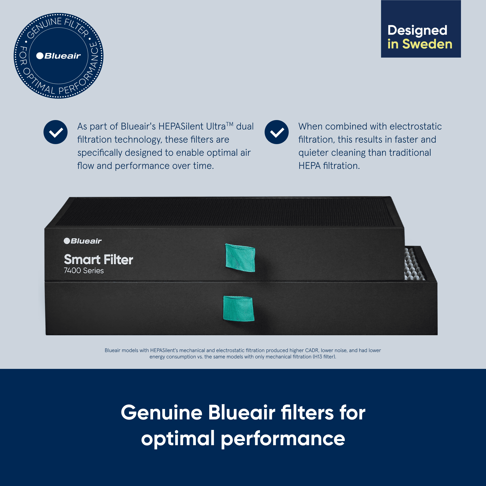 “Genuine Blueair replacement filter compatible with Protect 7470i and 7410i air purifier models. Our most advanced filter technology, SmartFilters are designed to deliver superior performance with data-based filter lifetime tracking, a smart RFID chip, and longer filter life (maximum of 1 year). The combination Protect 7400 SmartFilter features a particle filter layer to remove airborne particles like pollen, dust, mold spores, pet dander, viruses and bacteria, fine smoke particles and more. The activated coconut carbon layer absorbs gases, Volatile Organic Compounds (VOC), chemicals, odors, exhaust and more. Accurate filter life tracking helps you get the most out of your Protect 7400 SmartFilter and eliminates unnecessary replacement with an algorithm to calculate filter life based on fan speed, particle sensor data, and estimated filter loading. View data anytime via the app. The booklet design traps in pollutants, maximizes the filter surface area, and helps prevent premature clogging. Fold your SmartFilter together like a book to minimize exposure to pollutants during replacement. Once replaced, the air purifier will recognize the new filter’s RFID chip and automatically reset your filter life status. Your SmartFilter will last a maximum of one year depending on room conditions. To ensure performance, replace your filter when alerted by the air purifier and/or app that replacement is needed.