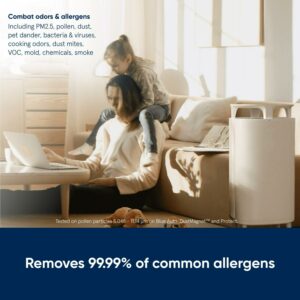 – technology; Kills germs and removes 99.97% of airborne particles like allergens, dust, pollen, dander, mold, bacteria, and viruses; Activated carbon absorbs light household odors from cooking, smoke, and pets
