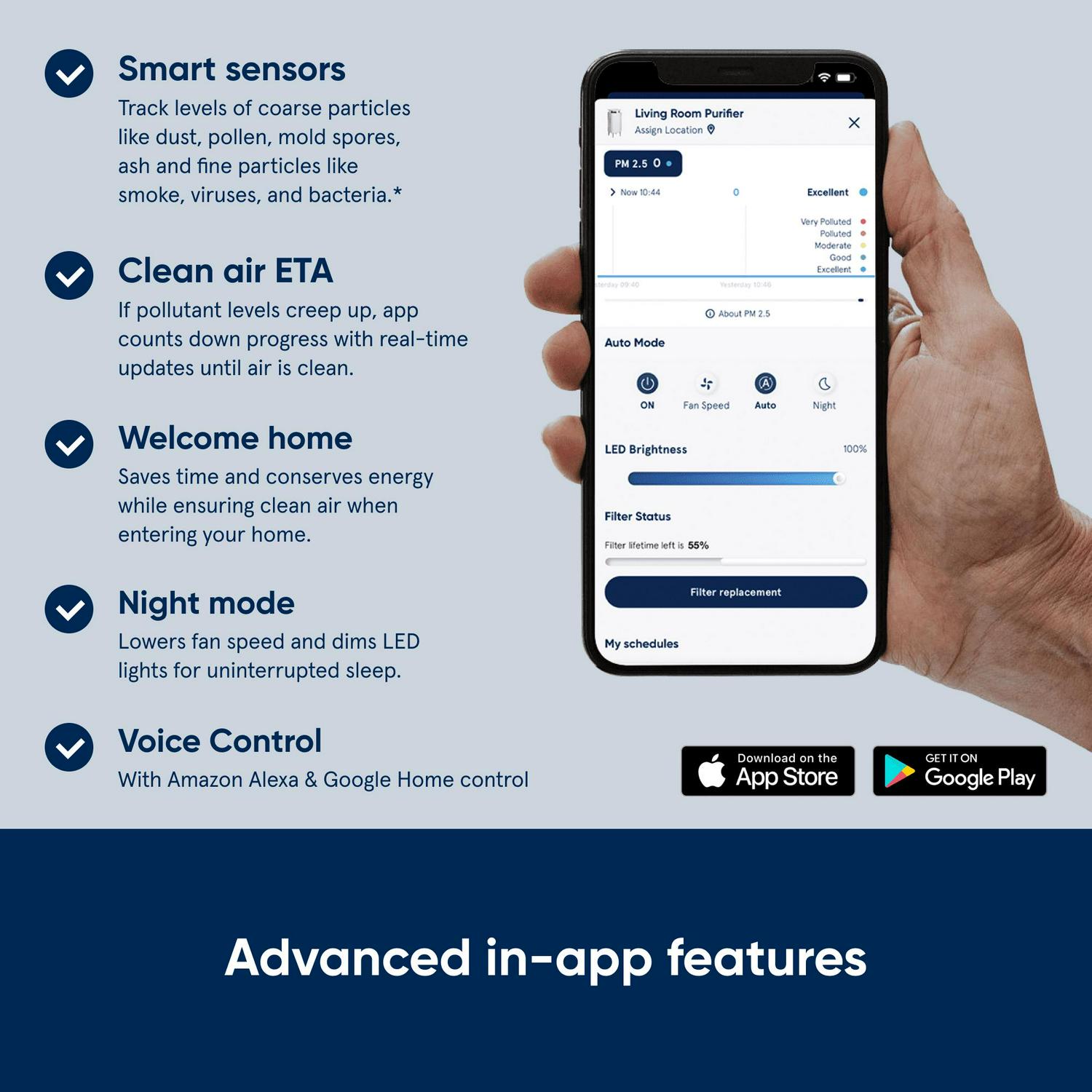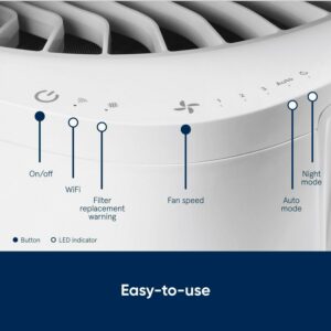 – Third-party verified for small to medium rooms; Completely filters the air in a like a guest bedroom, home office, or dining room in about 12 minutes² (approx. 5x and hour at 238 square feet) on high³