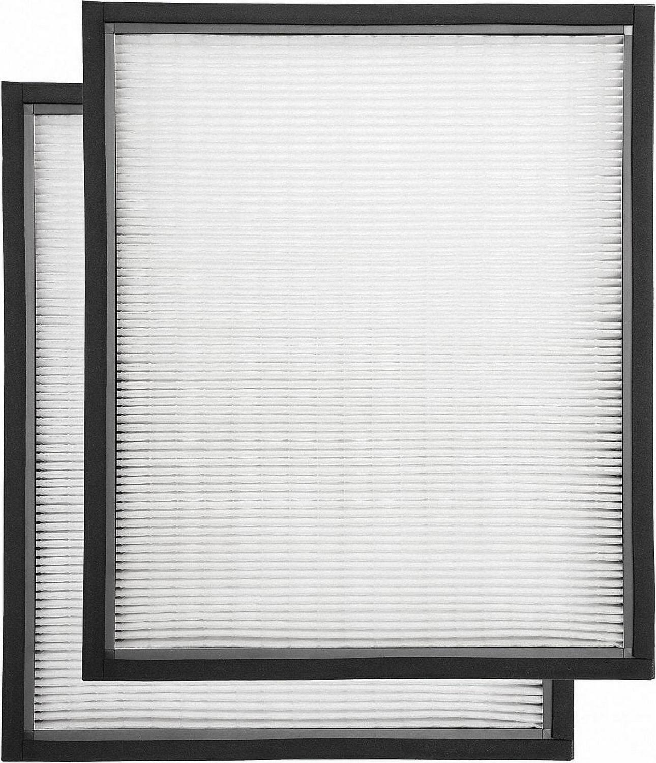 Air Scrubber Filter, Filter Type HEPA, Performance Rating MERV 17, Actual Depth 2 1/2 in, Actual Height 16 1/4 in, Actual Width 18 1/2 in, Compatible Grainger Part Number 56GX66, 56GY10, 56GY11, Compatible Manufacturer Model Number BD-AS-550, Number of Filters 2, Media Material Fabric, Fiberglass, Nominal Depth 2 in, Nominal Height 17 in, Nominal Width 19 in, Filters Down To 0.3 micron, Filters Out Asbestos, Mold, Filter Efficiency 99.97 Percent, Includes Frame Yes, Package Quantity 2