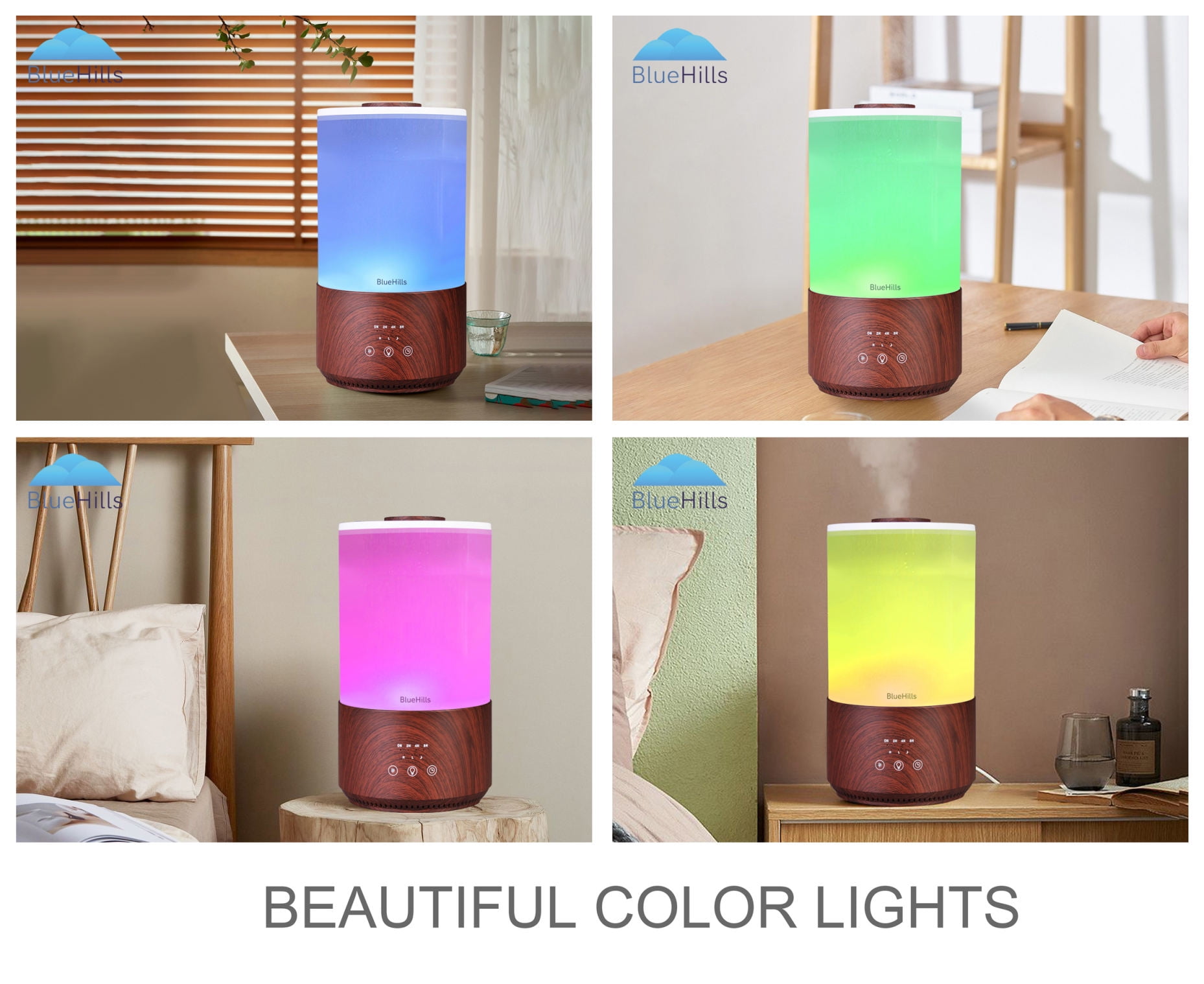 BlueHills Premium 4000 ml Tall Essential Oil Diffuser 4L 4 Liter 50 Hour Run with Remote Timer Aroma Humidifier 1 Gallon Big Capacity High Mist Output for Large Room Lights Dark Wood Grain XL T402