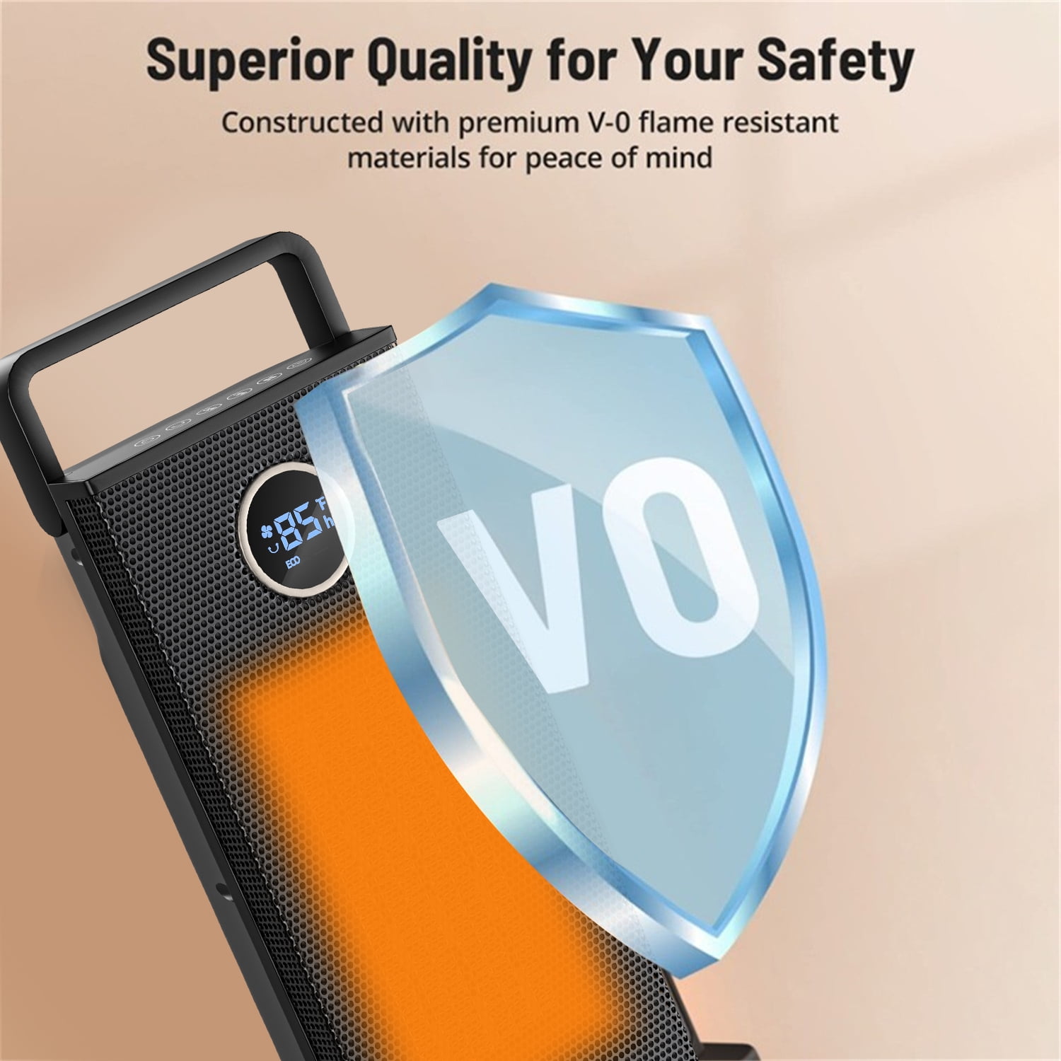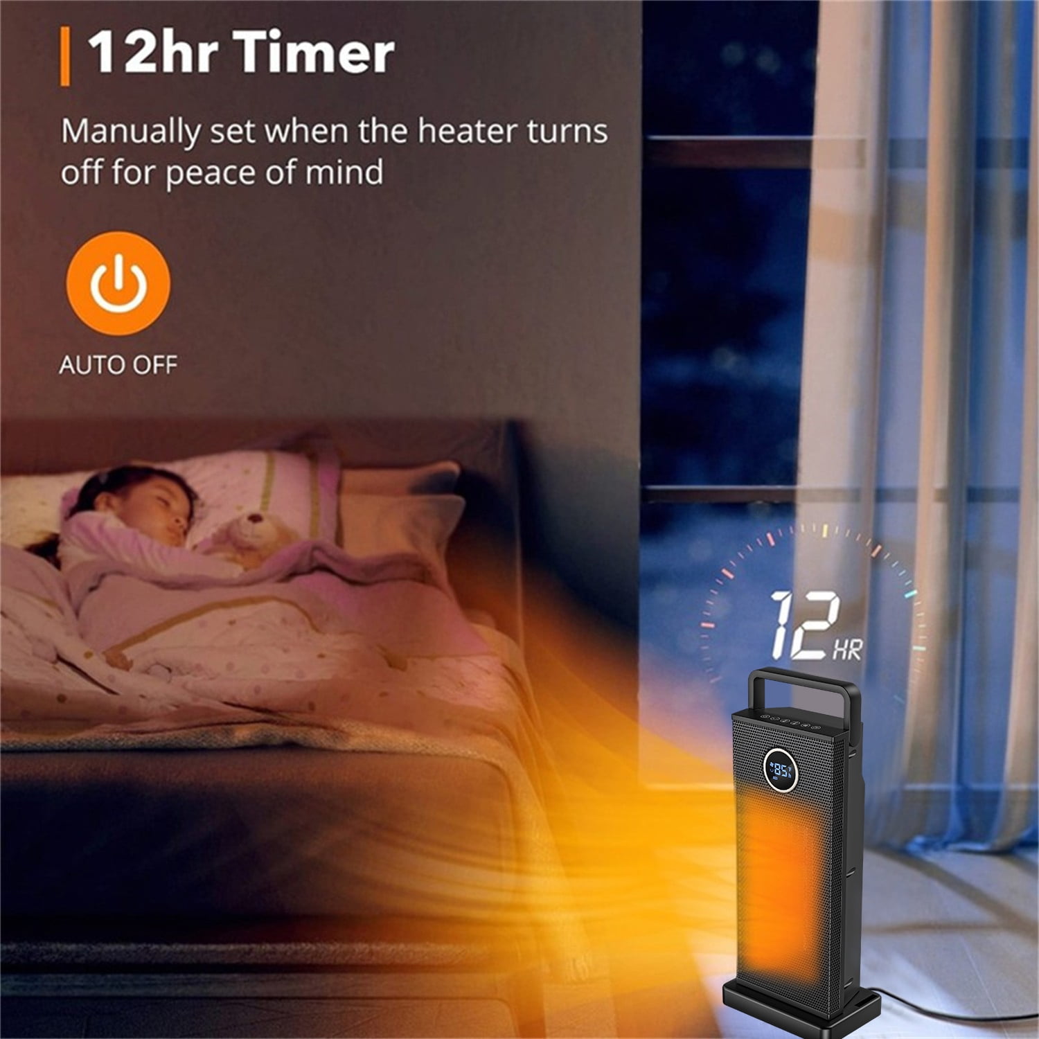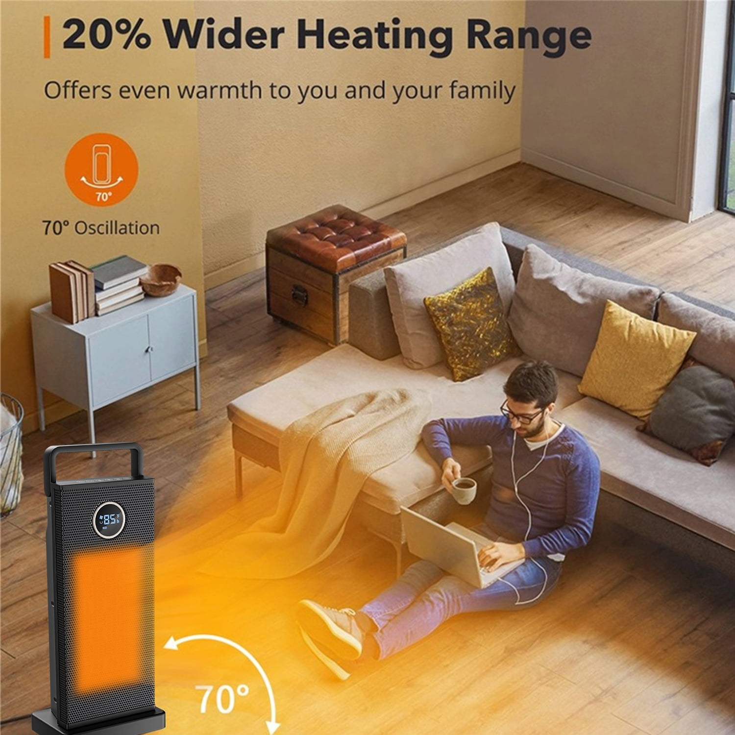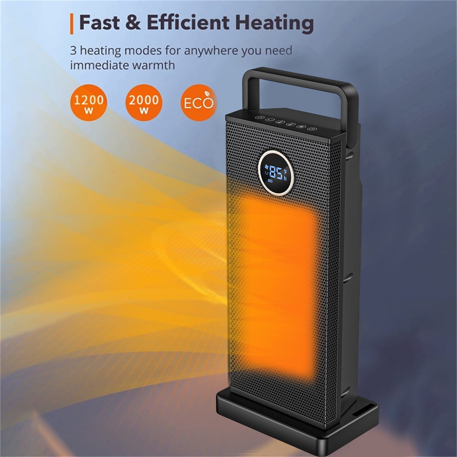 This electric space heater was made of lame retardant material avoiding fire hazard 3 output options: Low Heat, High Heat,it can be used even in summer With a 70° oscillating design, can cover wider area and spread warmth With PTC ceramic heating tech and high speed fan,can heat up the certain range space temperature in seconds perfect for indoor use, offer you a maximum comfort in cold winter