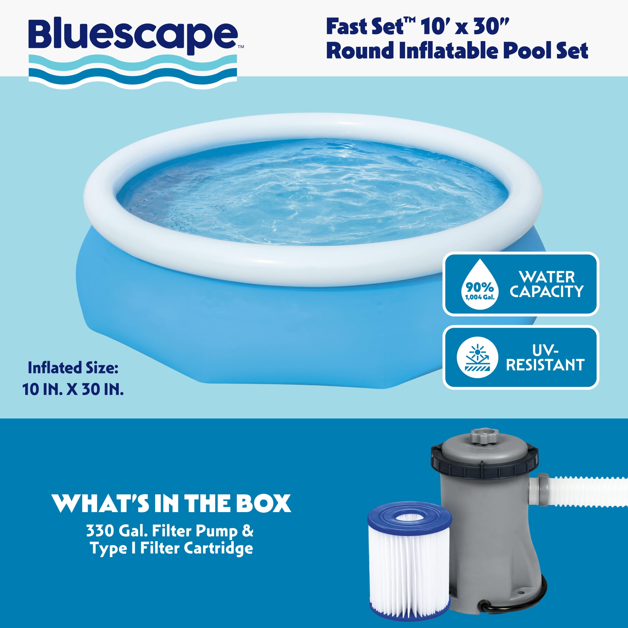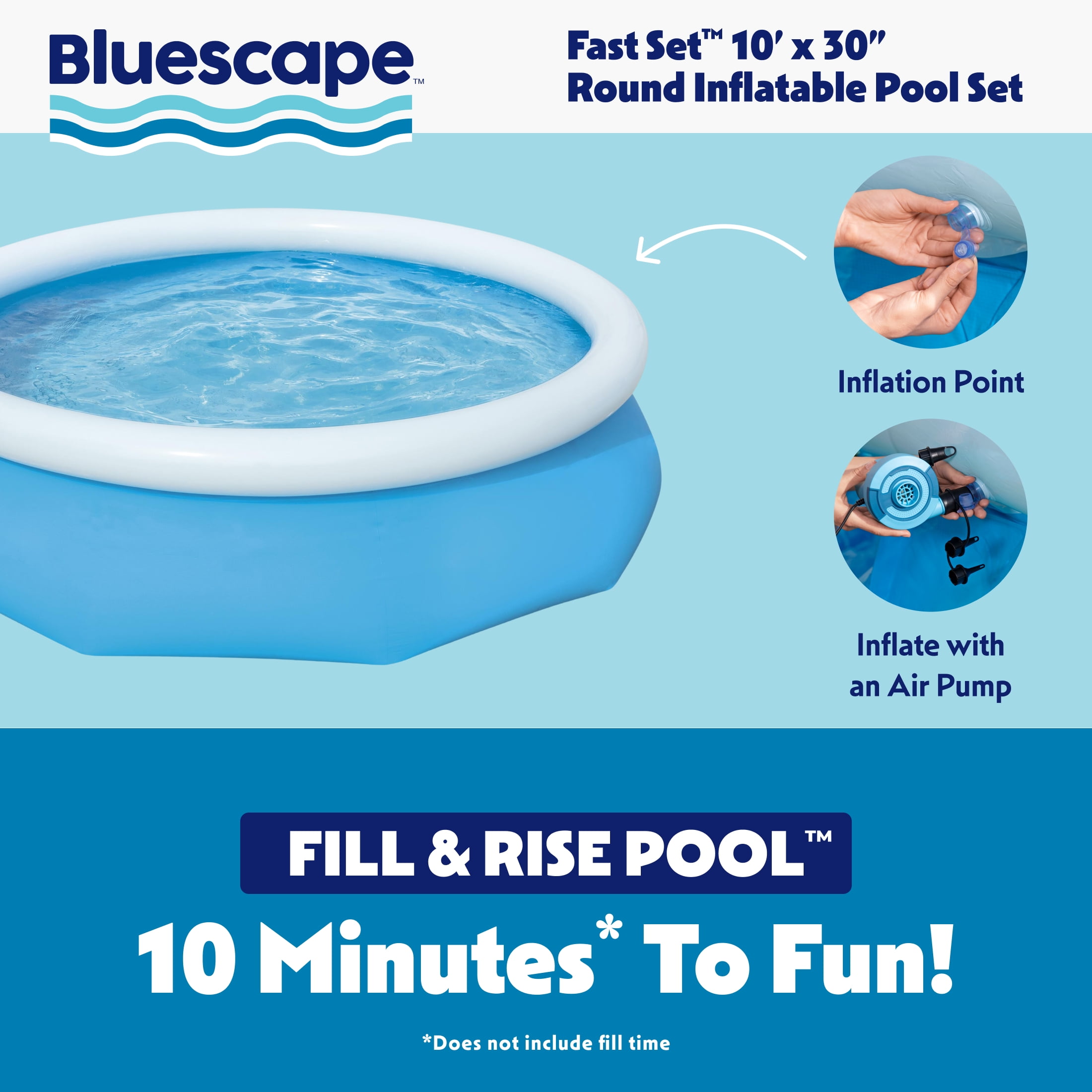 Bluescape Fast Set 10’ x 30” Round Inflatable Soft Sided Above Ground Pool Set