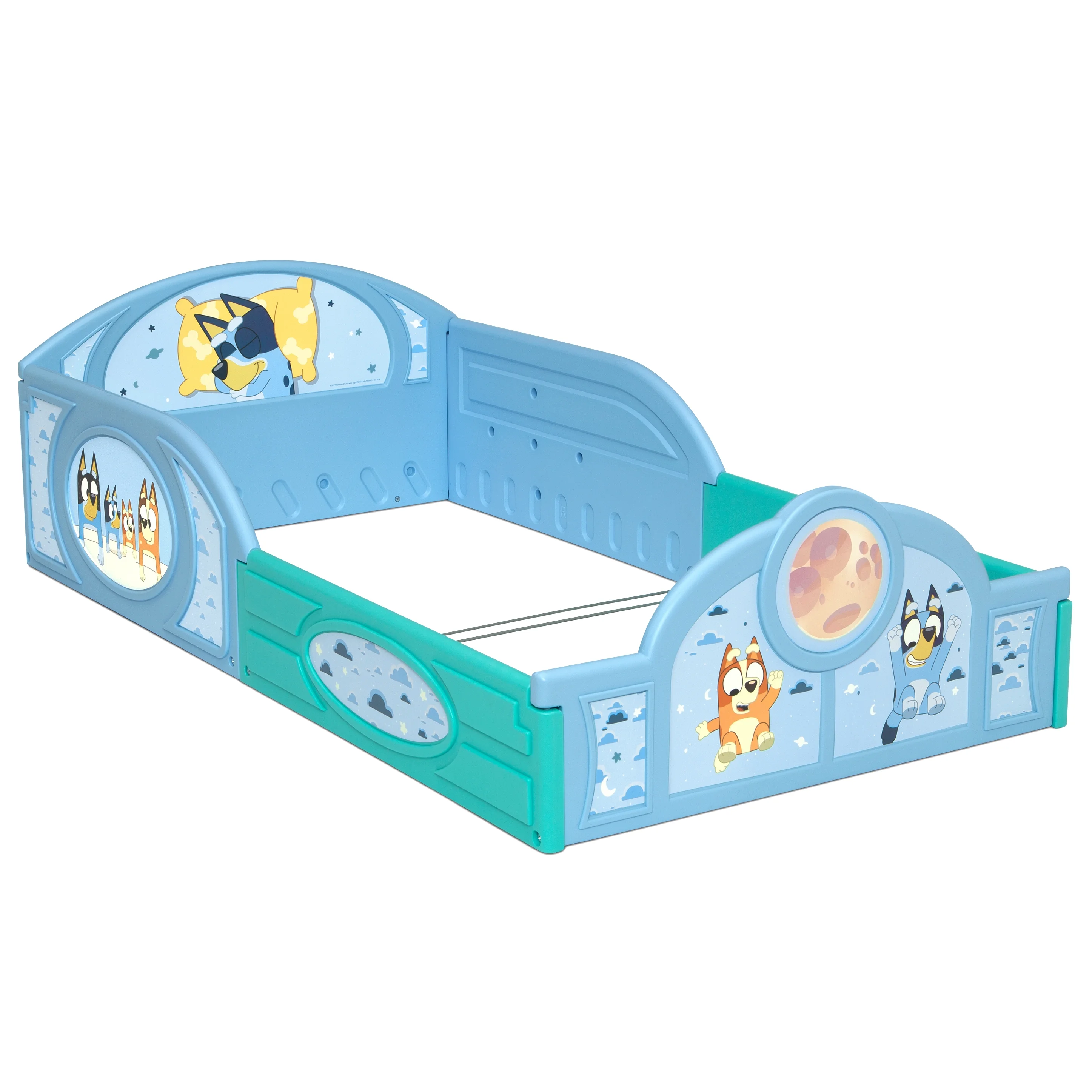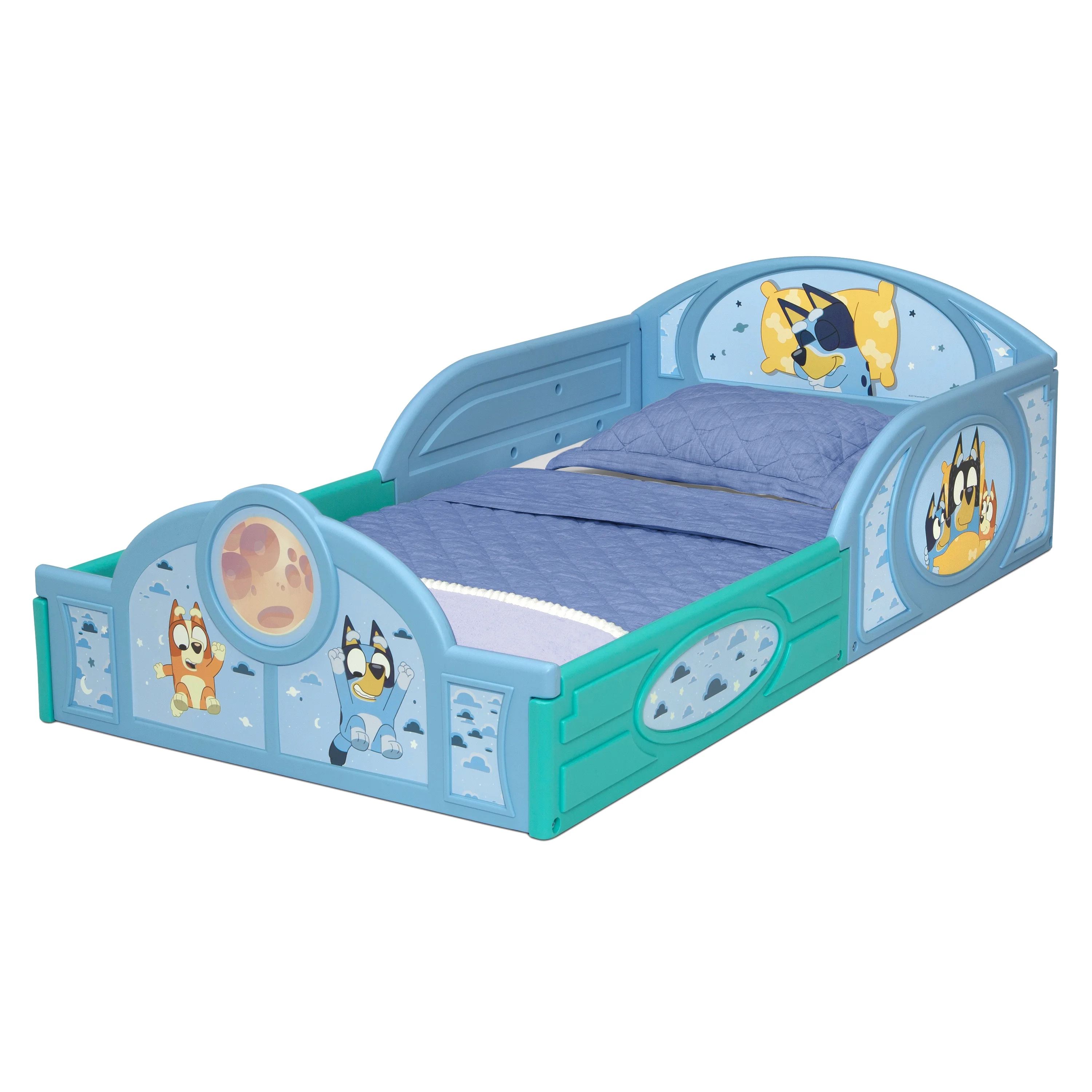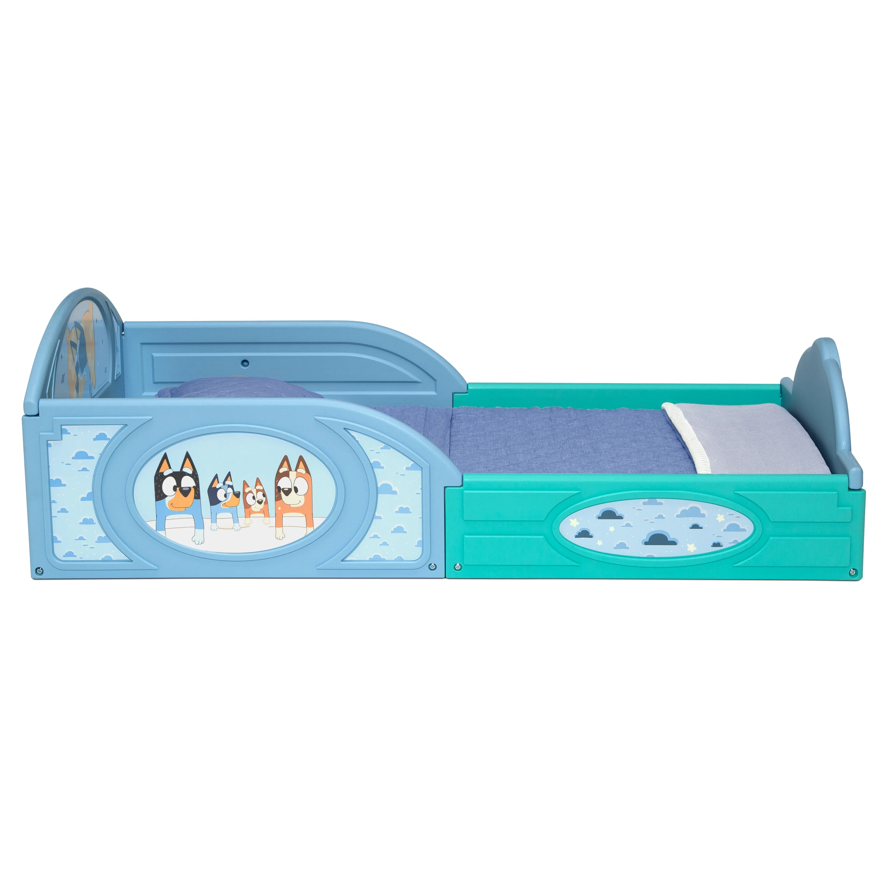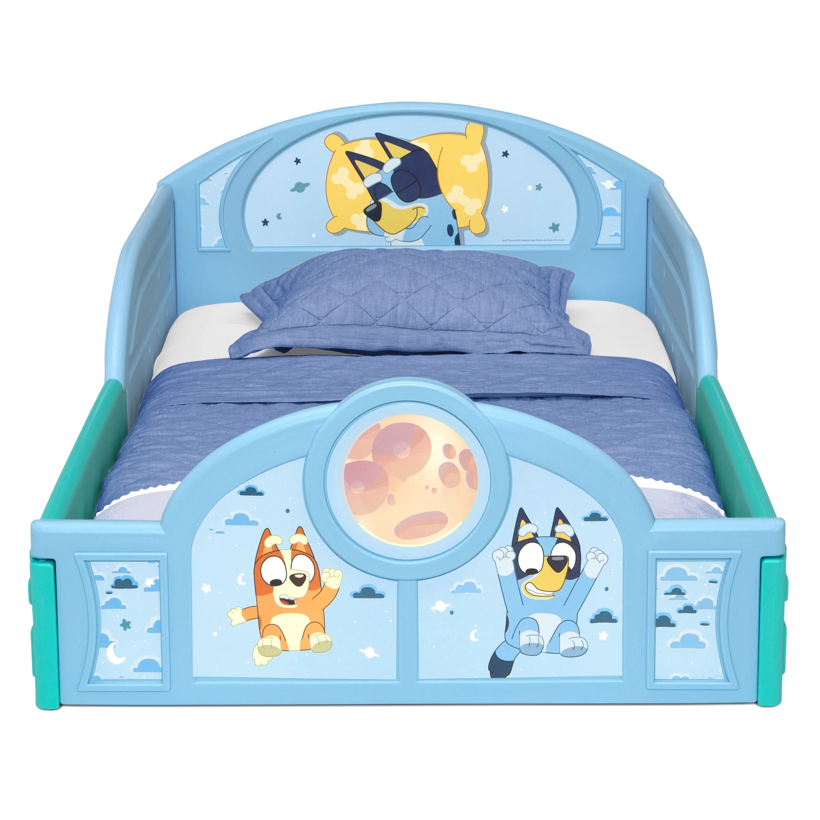 - FOR BLUEY FANS: Colorful decals of Bluey decorate the headboard and footboard | 3D detailing | Makes it fun and easy for your little one to transition from crib to toddler bed