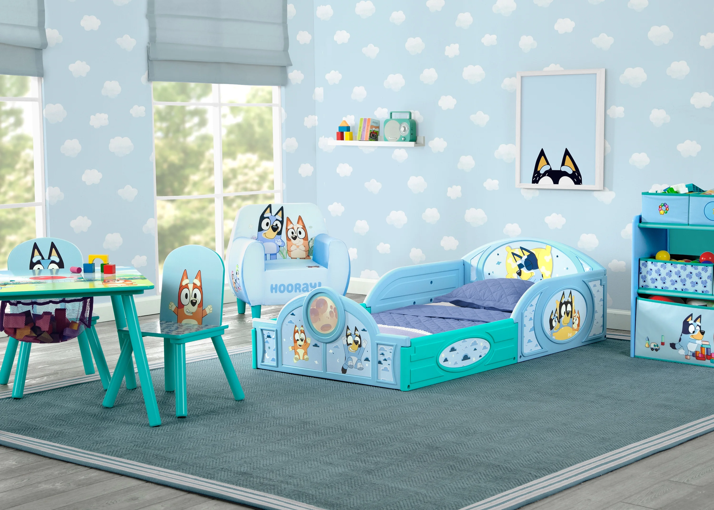 This Bluey Sleep and Play Toddler Bed with Built-In Guardrails by Delta Children offers the ultimate retreat. The bed’s low mattress height, attached guardrails and colorful Bluey graphics makes it the best option for your child’s first big-kid bed—it gives them the independence they crave while keeping them safe throughout the night. And that’s not all, the bed’s versatile plastic frame can also be used as a play enclosure or a ton of other fun things, like a ball pit (play balls not included). Get this toddler bed today and bring home pup-tacular style!