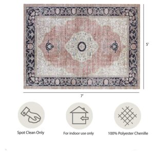 Blush Medallion Skid-Resistant Area Rug, 5′ x 7′