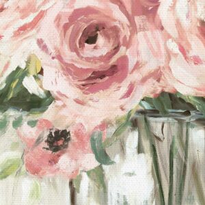 Beautiful broad brushstrokes of pink and white blossom from this stunning still life that features a bouquet of roses within a glass vase. A wonderful piece to add a touch of color and femininity to any room, whether it s your bedroom, bathroom, living room or office, this piece has a colorful charm and traditional quality to it that makes it an attractive piece of wall decor. Produced on the finest canvas material with superior printing technology, this print allows even the finest of the artist s intended details and intricacies to be seen. Plus, your new artwork fills the entire expanse of the canvas, making hanging a breeze and eliminating the need for framing.