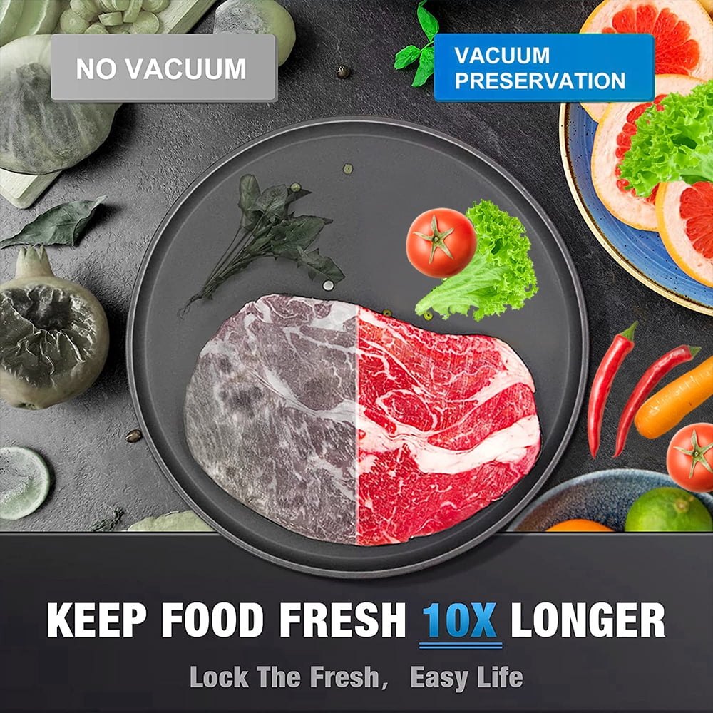 Do you like to buy food in bulk? Are you worried about keeping food fresh? A vacuum sealer is a great solution. You will find that it is fabulous for preserving food in the fridge and keeping food freshness longer with the machine. Supported 2-in-1 function combined with vacuum and sealing according to your usage needs. The vacuum sealer is a versatile and efficient kitchen appliance that allows you to prolong the freshness and flavor of your food while conveniently storing it. With its superior vacuum sealing technology, this device removes air from specially designed bags or containers, creating an airtight seal that prevents spoilage and maintains optimum food quality. It is a perfect assistant for your kitchen! This vacuum sealer can help to keep your meat, vegetables, and leftovers fresh and flavorful, above 10 times longer storage than traditional refrigeration, frozen storage and normal conditions. You can use fresh food or ingredients to prepare cooking and prepare meals. Save your time and money! Commercial Vacuum Sealer Machine Seal a Meal Food Sealer Saver Food Machine With Free Bags Keep Food Fresh Useful and Practical Moist/Dry food settings for optimal sealing. Using its one-touch operation simply select whether you’re vacuum sealing a dry or with moisture food. The food sealer produces great suction power of 80kPa to extract all air from the bag, ensuring the freshness of food for 8X times Longer. “Dry” and “Moist” Food Useful and Practical Moist/Dry food settings for optimal sealing. Dry for solid items and Wet for moist wet food. Before sealing moist food, we recommend that the bags are intact to avoid an air leak. Sous Vide Cooking It is perfect to prepare the food for parties, breakfast, lunch, and dinner. You can use this vacuum sealer to pack the food before sous video’s cooking, ensuring your food is evenly cooked without all of the mess and guesswork that goes into grilling or pan-frying. Long-lasting lifetime Blusmart Food sealer Machine is built with a stainless steel case, providing a long-lasting life for using the food machine. The durable metal finish also fits your countertop and makes it easy to clean. 🛒Visit seller store Click Here For Blusmart Vacuum Roll Bags