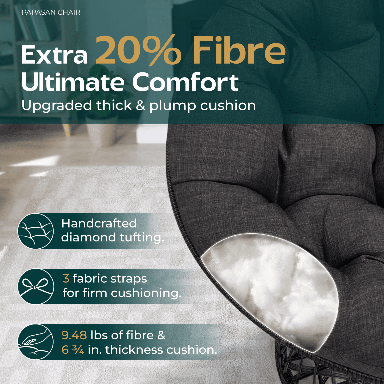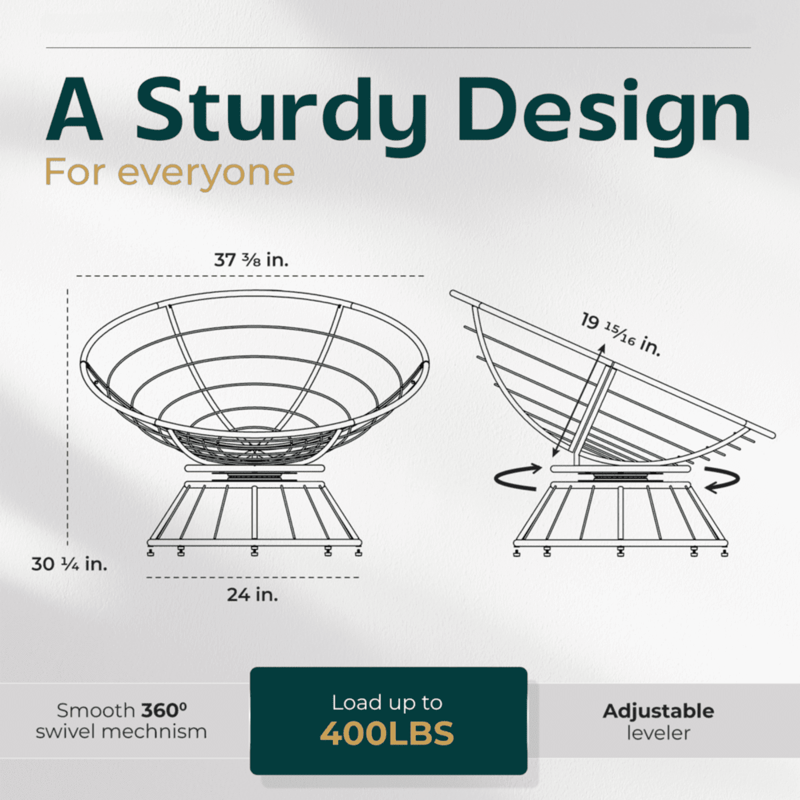 BME UNIQUE HIGHLIGHTS: Comfy Cushion: Fil 20% Fibre more to cushion for better feeling and softer than ever. Sturdy Design: Metal frame elegantly wrapped in wicker, adding durability and aesthetic appeal. 360 Degree Rotation: Smoothly swivel papasan without making any noises. Floor Protecting: Add on levelers to adjust durability and avoid scratching the floor. Stylish Interior: Ideal choice for in-house places: living room, bedroom, etc. Various Options: 17 trendy colors ready to serve your decoration concept. Competent Packaging: All in a single box including parts, tools, and user-friendly instructions are shipped straight to your door. SOME ASSEMBLY NOTES: Support a load up to 400 lbs. Item dimensions: 35.9″ L x 40″ W x 35.24″ H. Easy to assemble by following manual instructions. WARRANTY: 1-Year Warranty, 30-Day Return, and 24/7 supportive Customer Service Team.