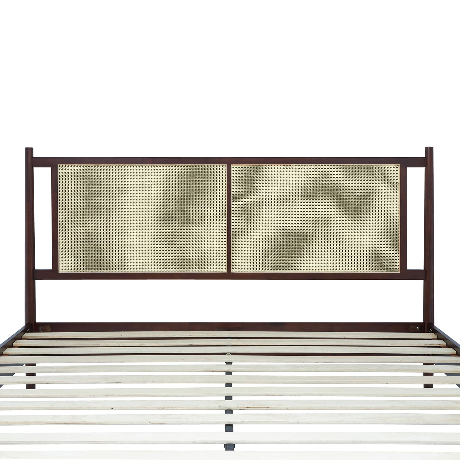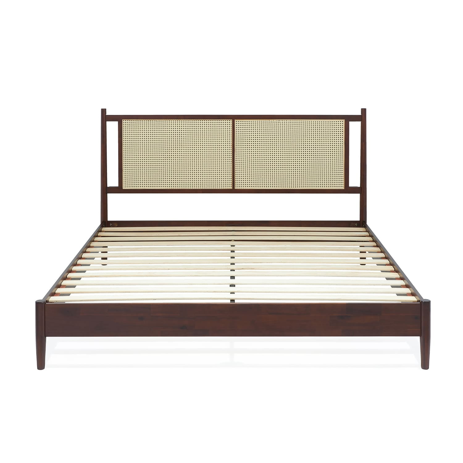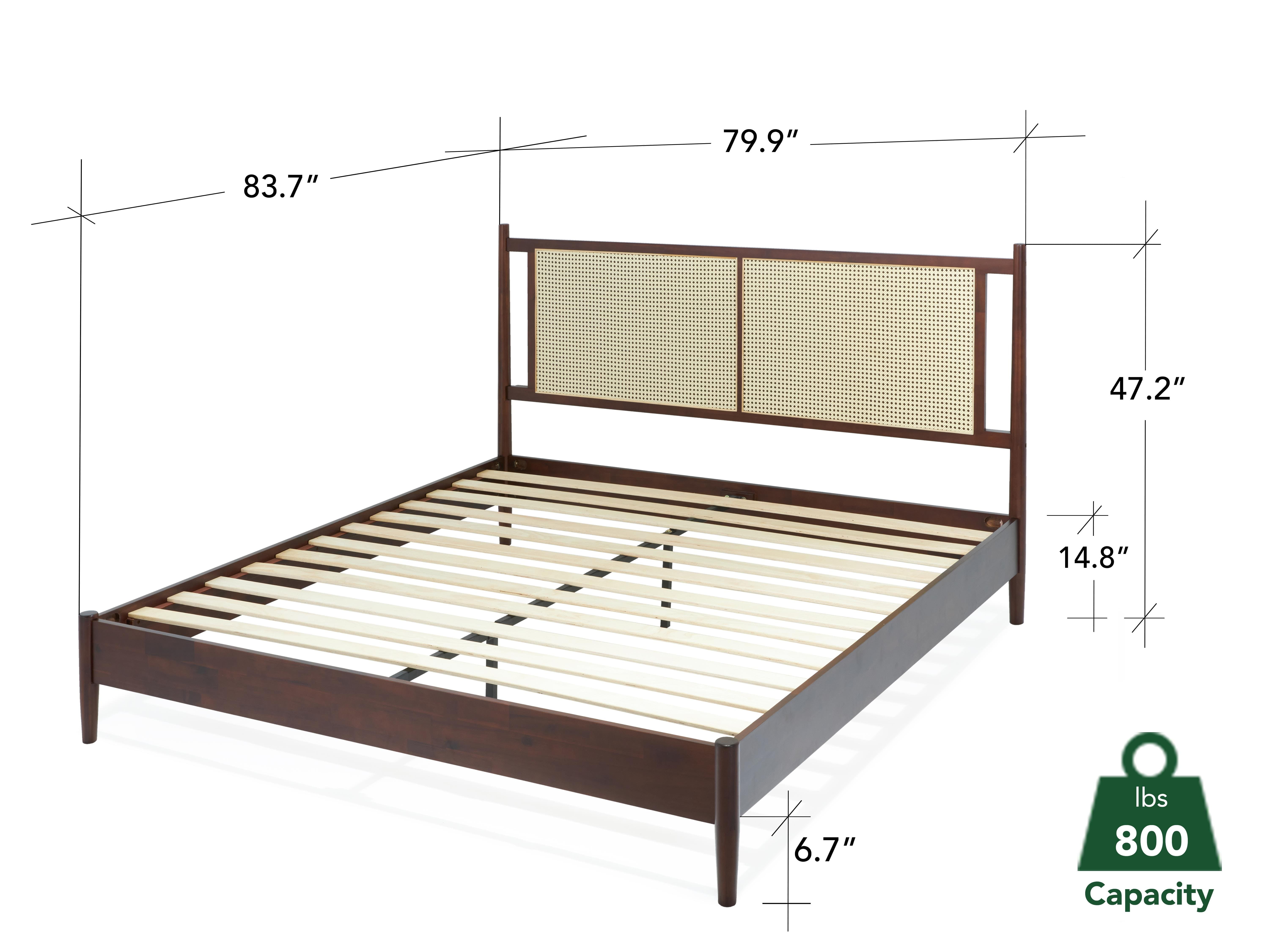 Asher 47″ King Platform Bed Frame, Rattan Headboard, Mid Century and Boho, Solid Wood, Walnut