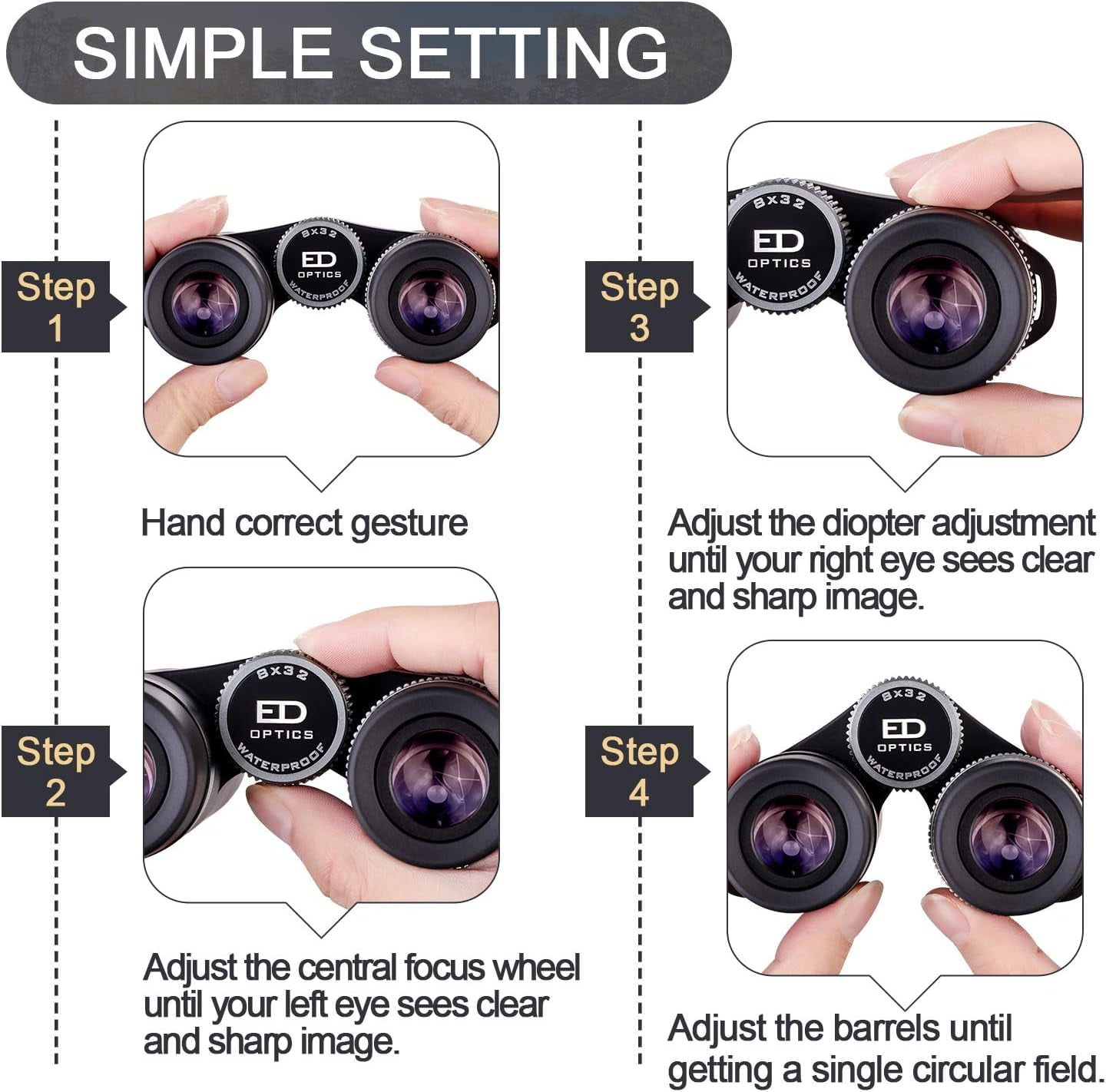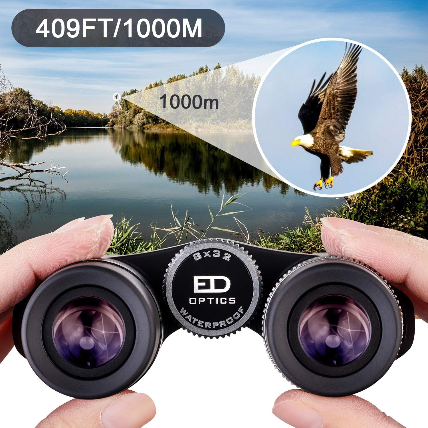【8X Magnification, Easy Focusing】Effortlessly focus on distant targets by adjusting the focus wheel and diopter settings, with a field of view distance of 409 feet at 1000 yards.