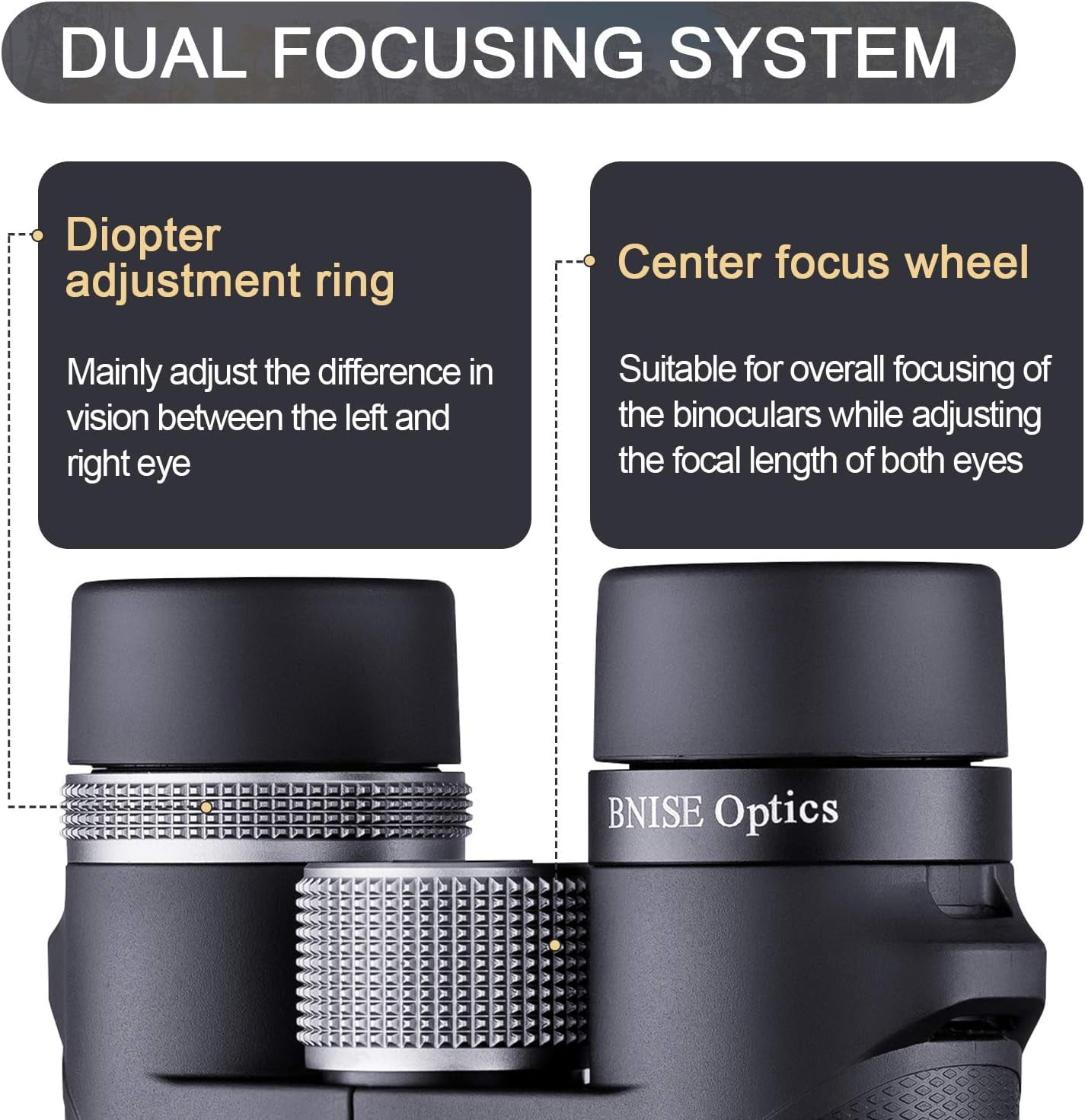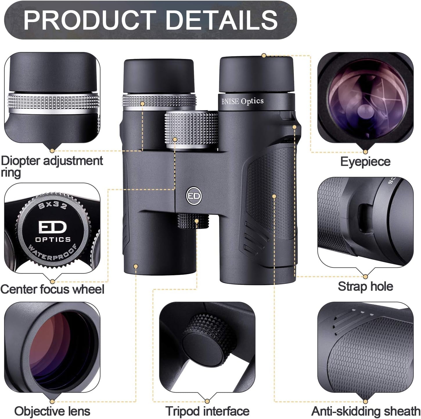 Experience crystal clear optics with BNISE binoculars! Featuring BAK-4 roof prisms and fully broadband multi-coated lenses, these binoculars optimize light transmission for bright, sharp images. The Super ED glass reduces glare, ghost images, and chromatic aberration, delivering even clearer and sharper views. Compact and lightweight, they are easy to focus with a focus wheel and diopter adjustment for near and far objects. Built with a durable magnesium alloy, these binoculars are tough enough for extreme outdoor conditions and are waterproof and fog proof. Enjoy peace of mind with BNISE’s Worldwide Warranty and 100% money-back guarantee. Unleash your adventures with BNISE!