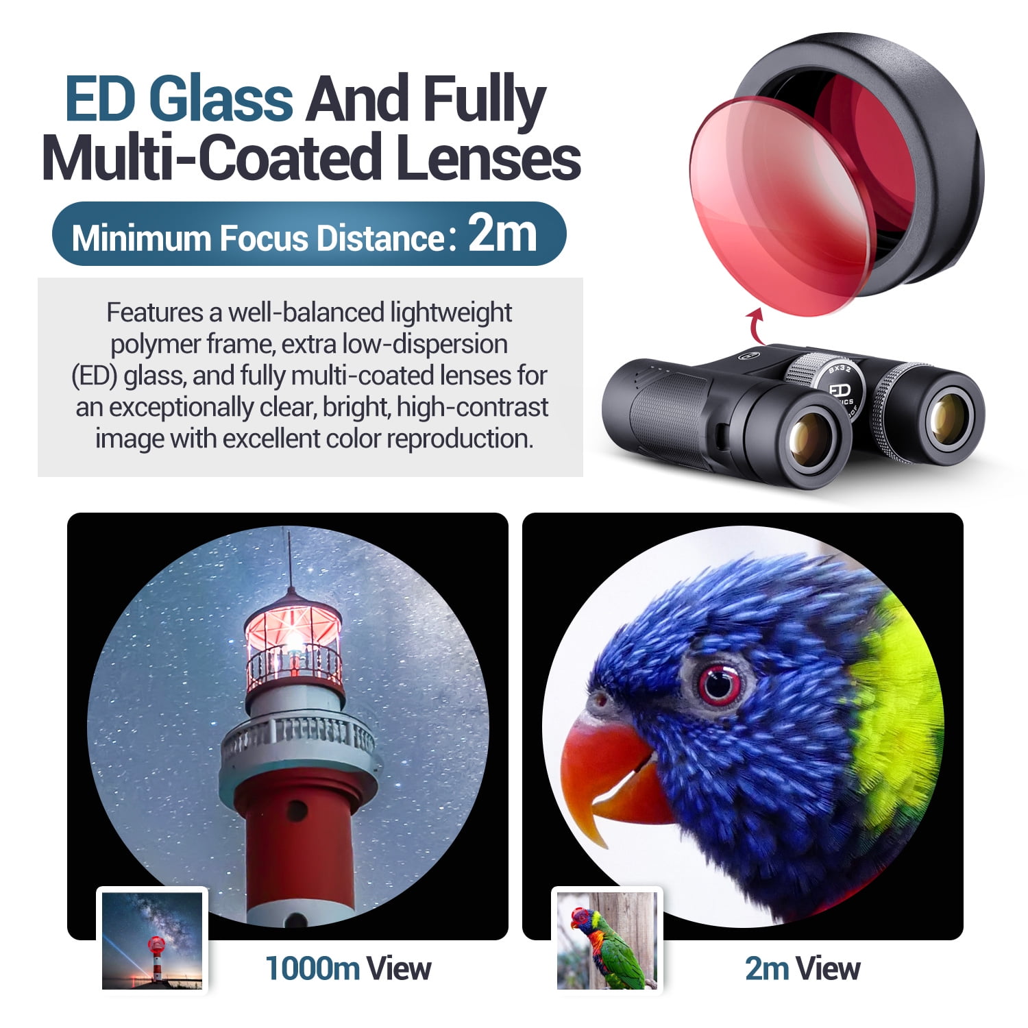 【Ultra-Clear ED Professional Binoculars】The BNISE 8x32mm binoculars are equipped with High-end ED (Extra-low Dispersion) lenses and FMC (Multi-layer) coatings, performing exceptionally well in reducing chromatic aberration, enhancing resolution, and improving image contrast. Whether you’re observing distant landscapes, celestial bodies, or wildlife, you’ll enjoy a more realistic and detailed visual experience.