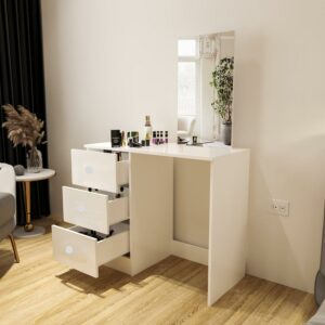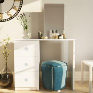 – Beautiful Design: The White finish and modern style of this Vanity Table complements any interior style.