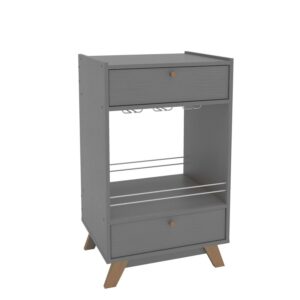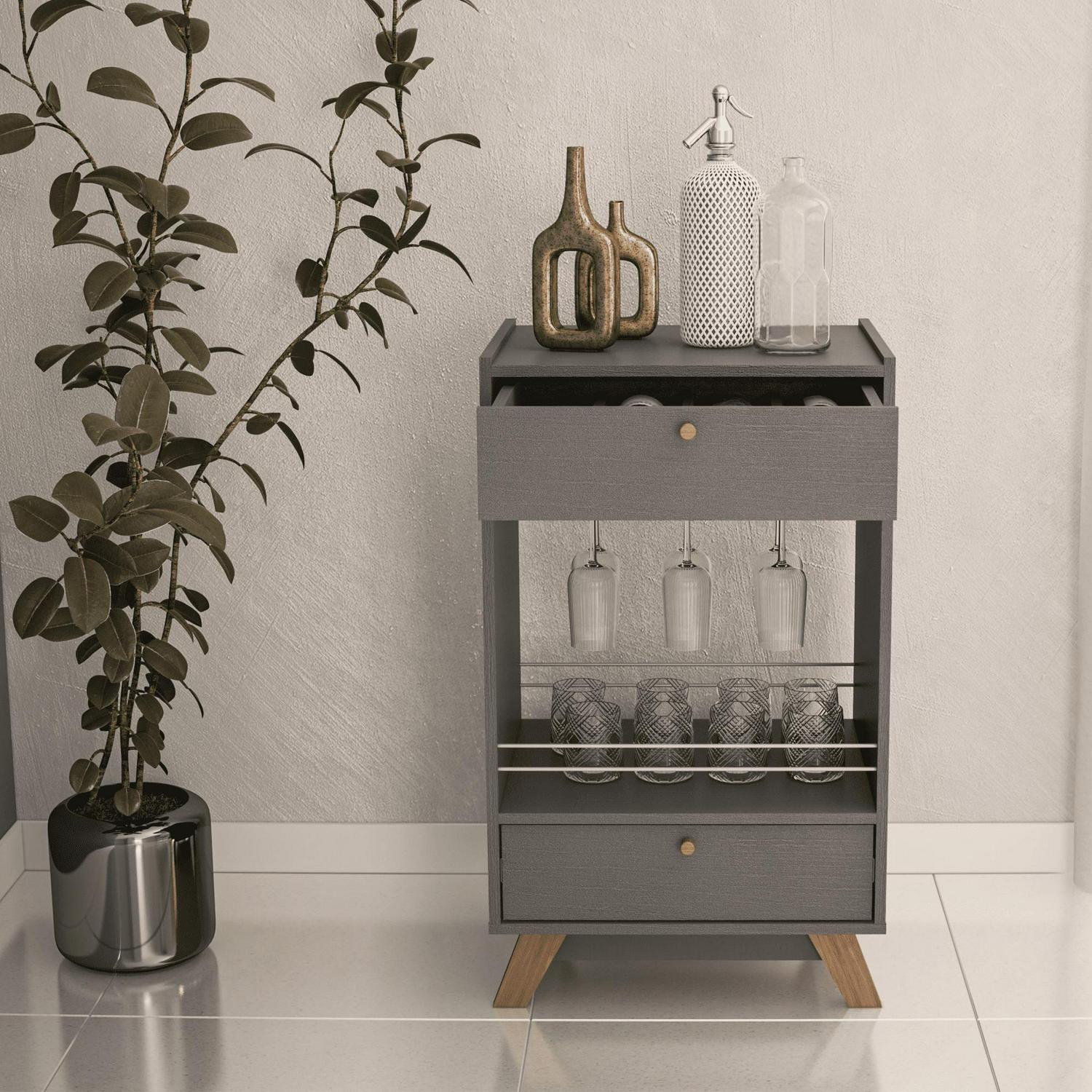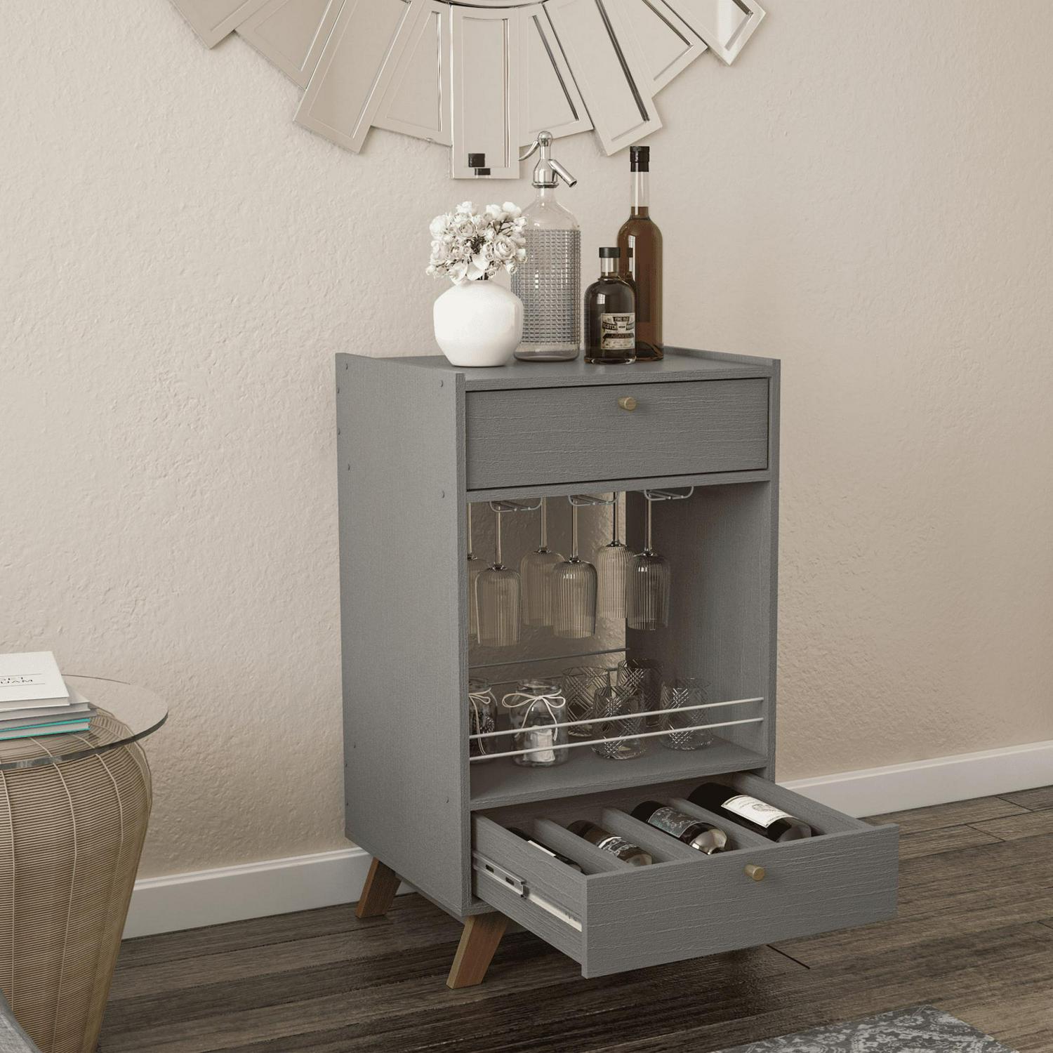 Boahaus Belfast Modern Mini Bar Cabinet, 2 Drawers, Wine Glass Rack, Grey Matte