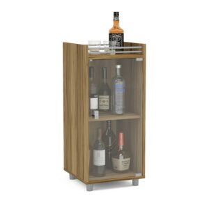 Boahaus Classic Mini Bar, One Clear Glass Door, 2 Shelves, Brown