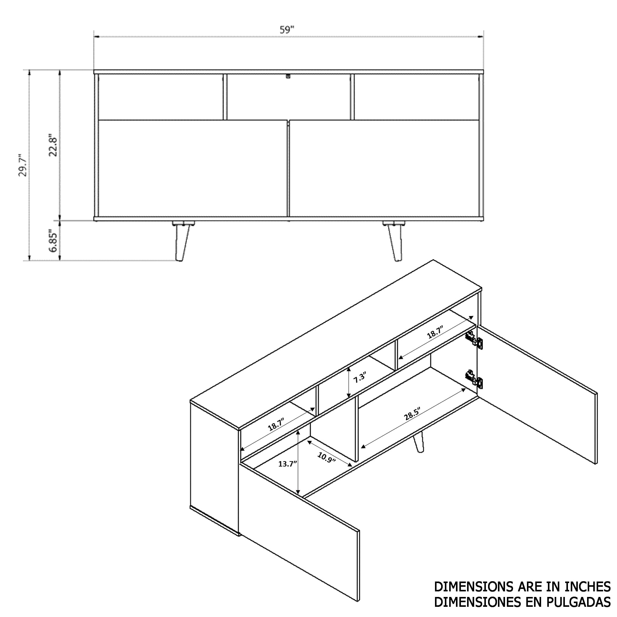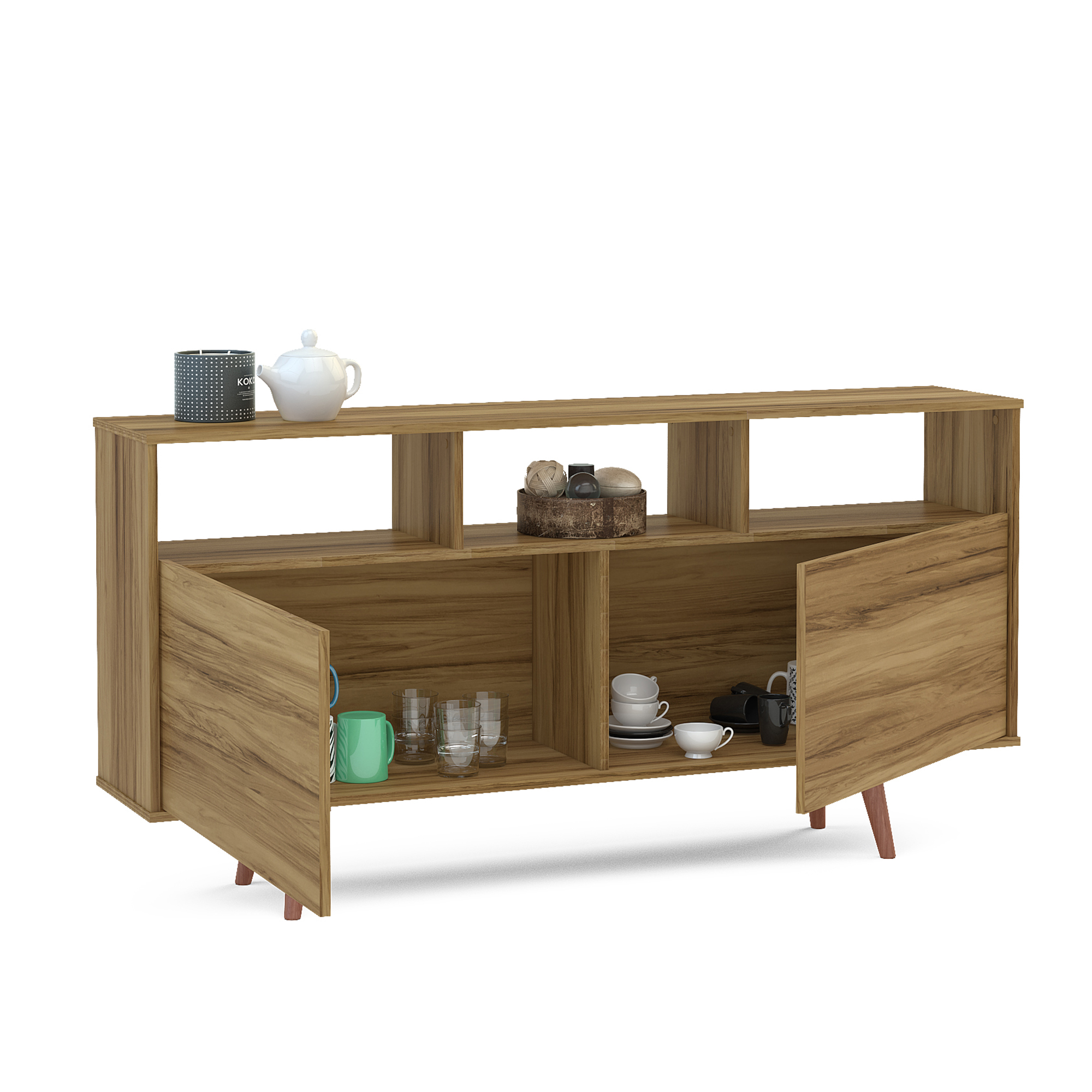The space-conscious Boahaus Modern Brown Sideboard with a design twist is the one you should have in your home. When storage is needed and you want to give a good style to your living room, this fabulous sideboard is your best choice. Set it on a wall across from the front door to greet guests, use it to stage leaning mirrors and potted greens for a look of earthy elegance, then add in a touch of personal appeal with a few framed family photos. Subtle enough to beautifully blend in, it features two large closed compartments perfect for storing books, magazines, or anything you would like to have near your front door. Give it stylish decor putting your favorite souvenirs on the open shelves and impress your friends with tales from your adventures when they notice them. The Boahaus products are Carb Composite Compliant Phase II which meets the highest environmental standards and it fulfills ISTA 3A standards to ensure optimum safety during transit. Dimensions are 29.70″ H x 59″ W x 12.80″ D