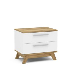 Give smooth style and extra storage space to your bedroom arrangement with the fascinating Ibiza nightstand. Crafted from manufactured wood with solid wood legs, this piece features a mid-century silhouette designed to pair well with modern bedrooms, while two drawers give you plenty of space to tuck accents out of sight. This design’s top features enough room for you to place a table lamp and your reading book or tablet.