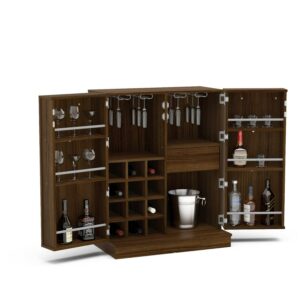 Boahaus Liverpool Modern Bar Cabinet, Wine Storage, 2 Doors, 1 Drawer, Brown